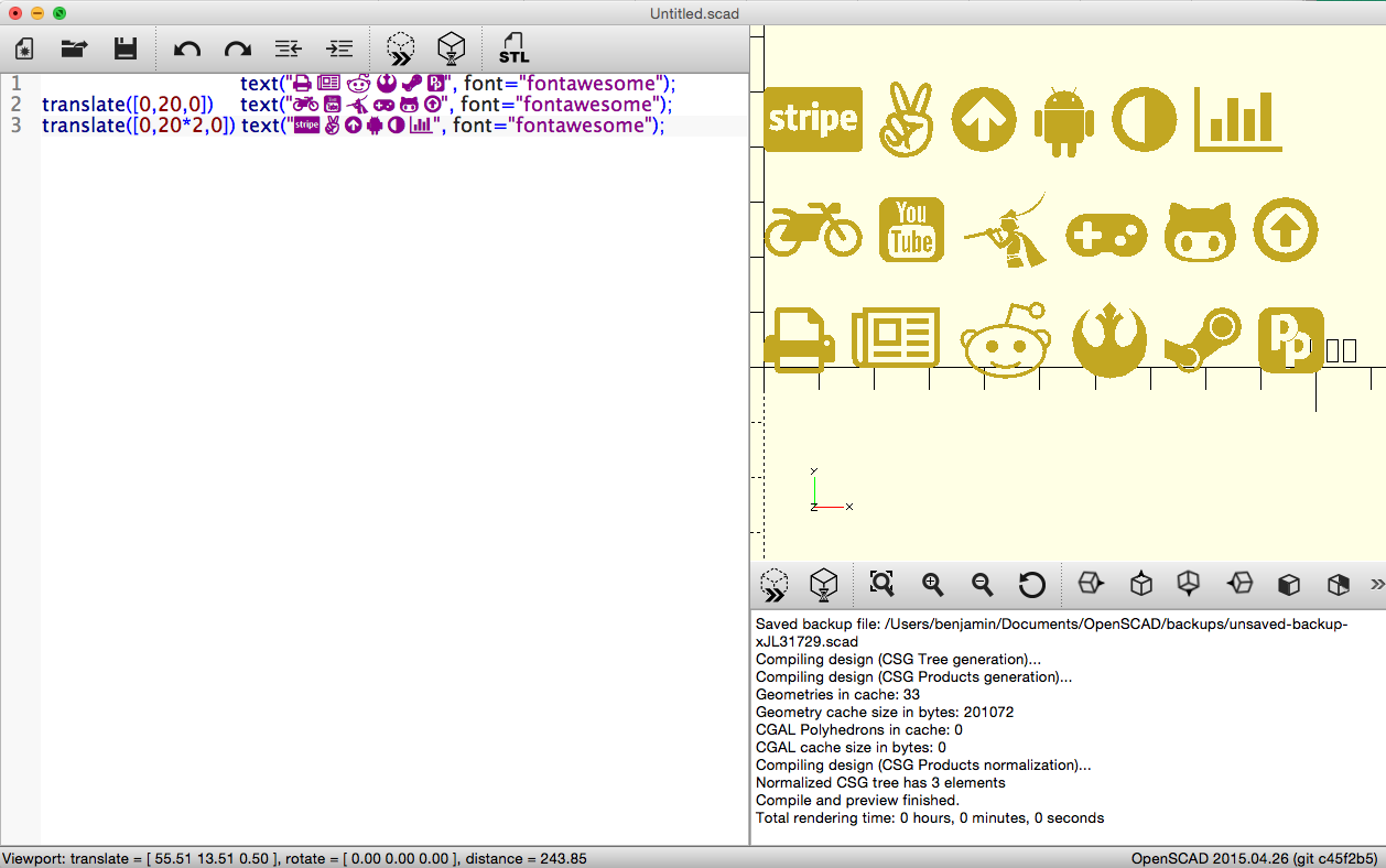 I am sure that some of you here use OpenScad to model things up, today I had the idea of pairing it with Font Awesome, and now I can make more complex things with less code