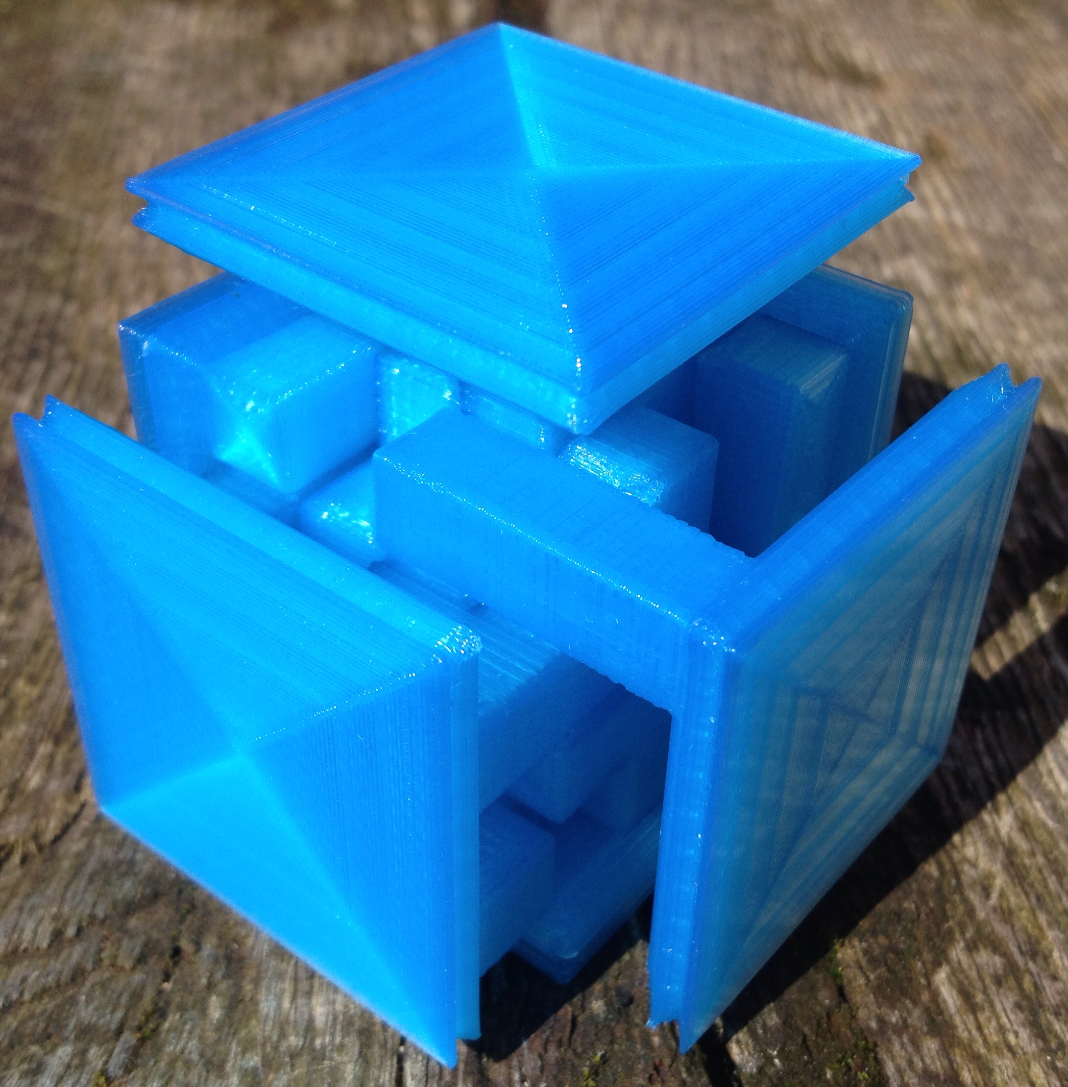 I designed my Steady State cube puzzle about 5 years ago and still sell it through the microcubology shop at Shapeways. It was always my intention to be able to print copies of my back catalogue puzzles on my RepRap printers but the support material removal has never been clean enough to allow this - until now.