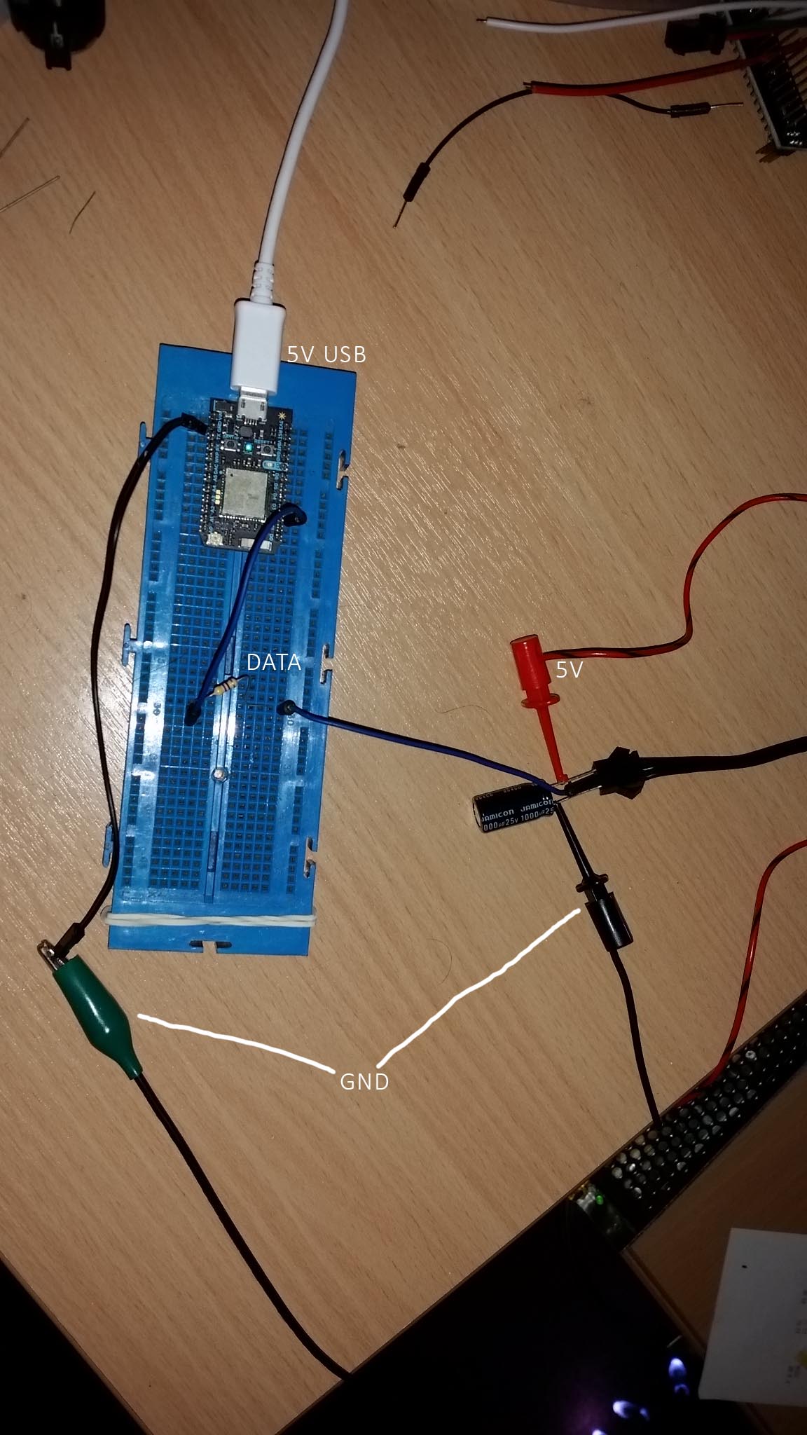 I dismantled a setup where I had my WS2811 strand working with FastLED on a photon. I’ve just set it up again with exactly the same program running and it’s now not working… I’ve attached a pic of the setup and here’s a vine https://vine.co/v/izV1VFKwFL9 showing the LED behaviour… I can’t work out whether I’m doing something silly. Any ideas? The only thing I can think that’s different from the setup before is that my MSGEQ7 shield is no longer occupying inactive I/O lines…