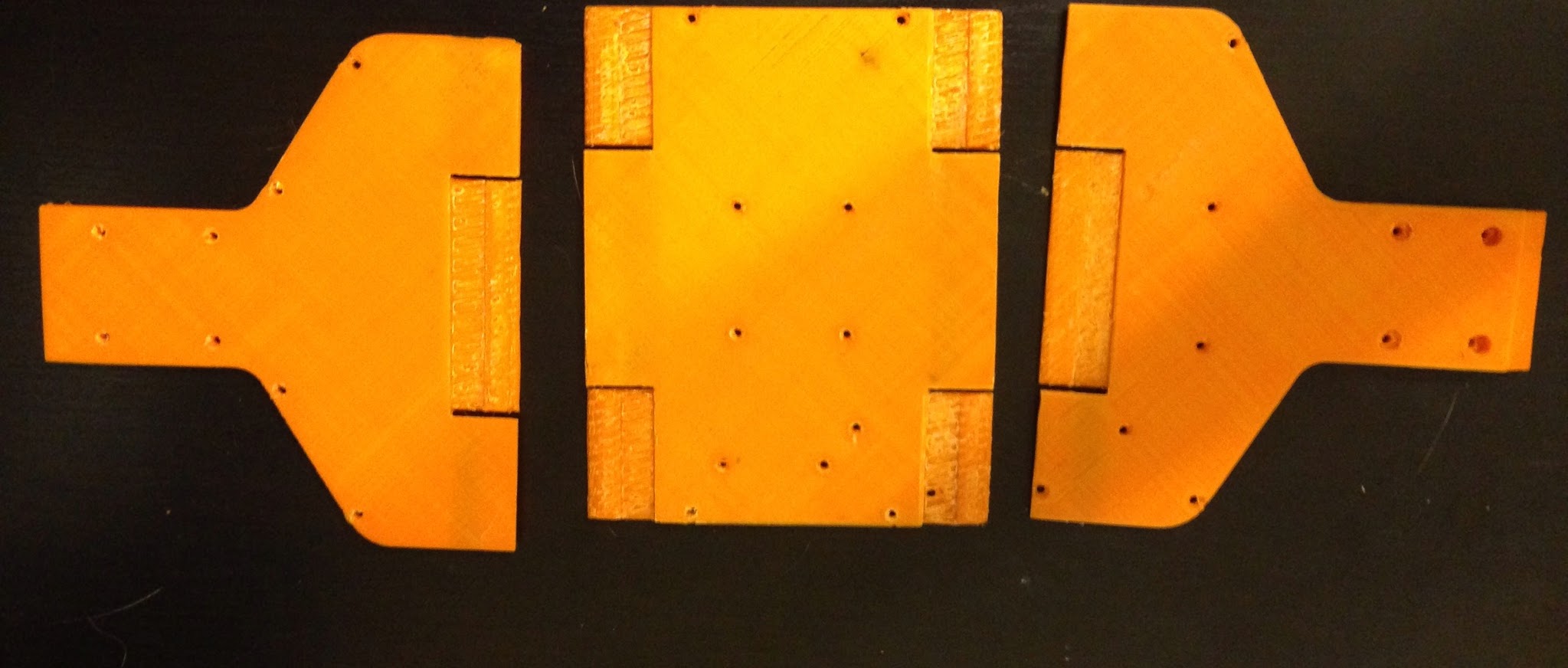 I finished printing and mostly cleaning up the support material from the 3 piece chassis plate. Here are some photos of what the finished first version look like. It is very stable all by itself, however I have designed the side guards to create even more support. I am working on the first try at printing the sides now. If all works, this project will be available to even more people. Thank you for such a great platform to work from!