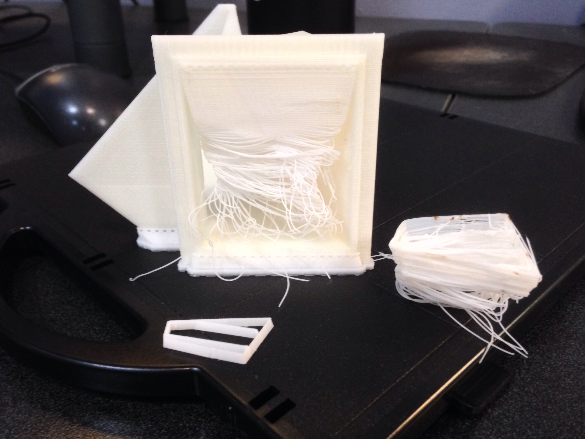 I got lucky with the Stratasys last night. Left it running over night. When I woke up I saw a build that walked the line between success and spaghetti. At some point the nozzle knocked the support structure off. Somehow the spaghetti made a recovery though.