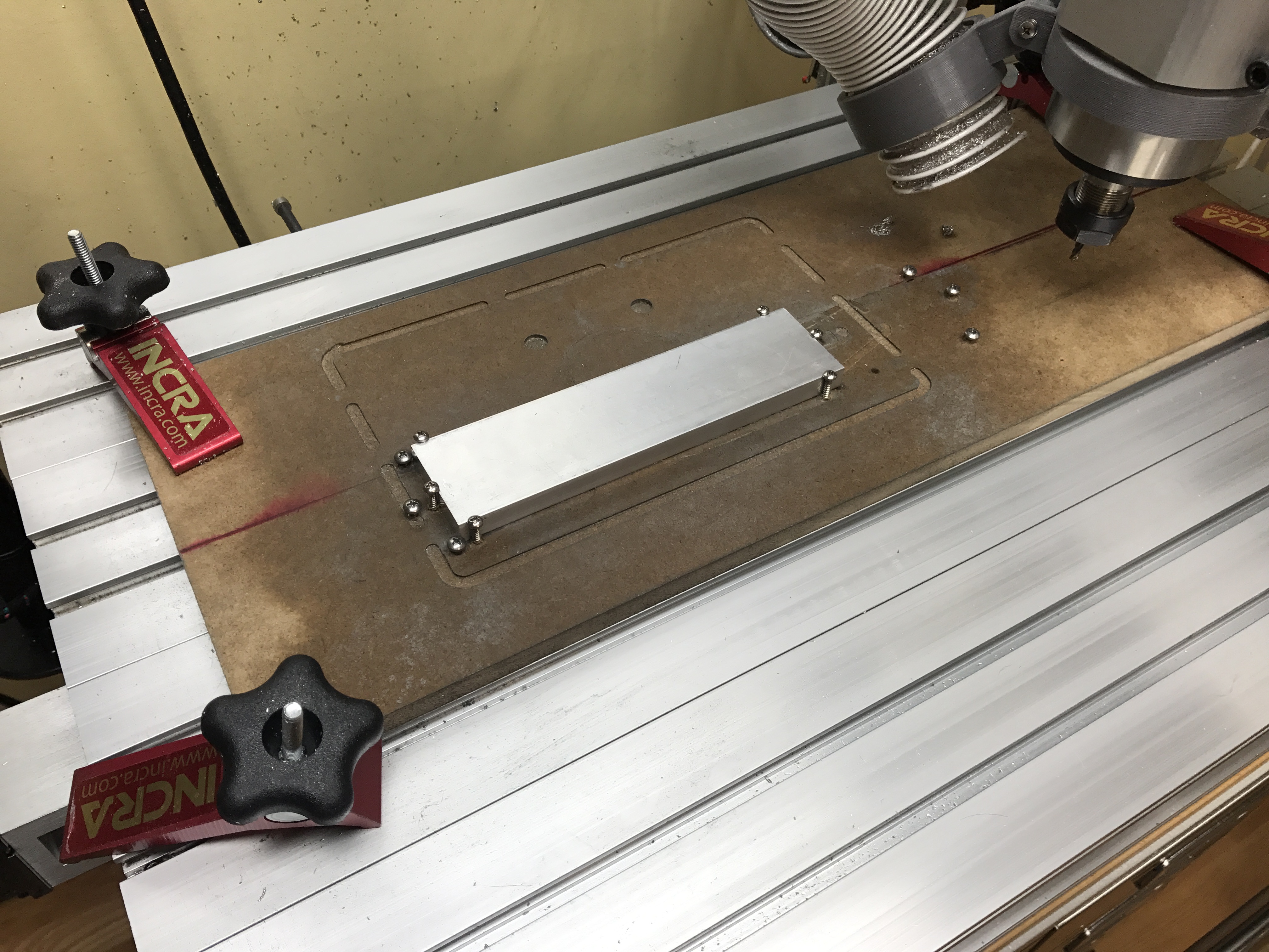 I had to add another pre-run checklist item last night. My x-axis coupler came loose mid job. I was able to stop it before it ruined the stock, and then I was able to regenerate the gcode for just the things it missed. The parts came out pretty good, there is just enough play on the spindle that when cutting around the tabs it seems to bite in to the part slightly. Not a show stopper by any means. These parts are for mounting the actuators to my sim racing motion rig. I cut them with a 4mm end mill at 500mm/m at 9000rpm, with a 0.6mm cut depth. The parts are 12.5mm thick, so it took a while…