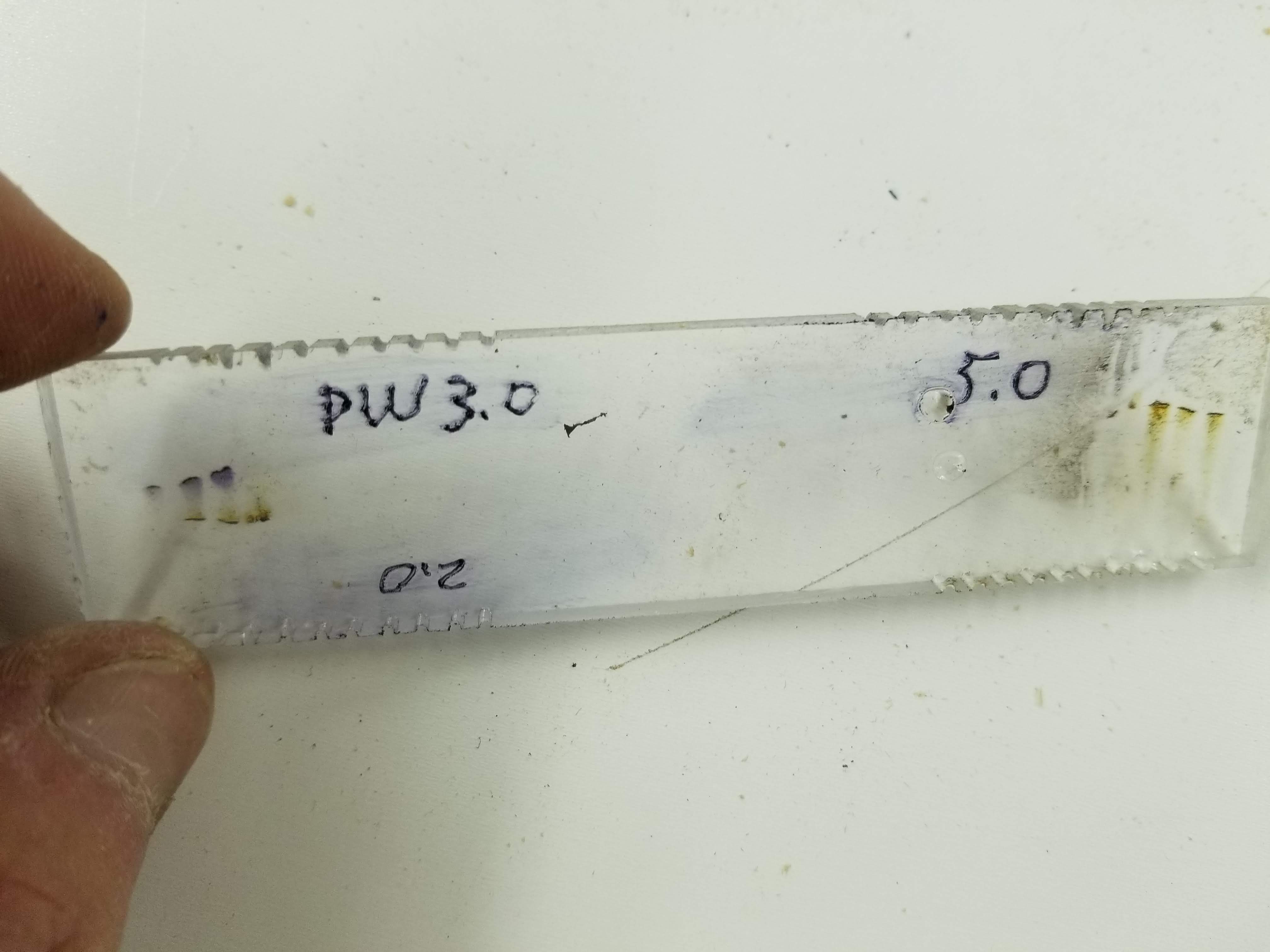 Today I decided to do a power test by cutting across the edge of a piece of .22" acrylic to see how deep it cuts.