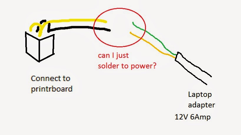 I just get myself a new printrboard, I plan to power it up with a 12V 6amp laptop adapter, but not sure how I would connect it to my laptop, Is it safe if I just solder it to the molex cable?