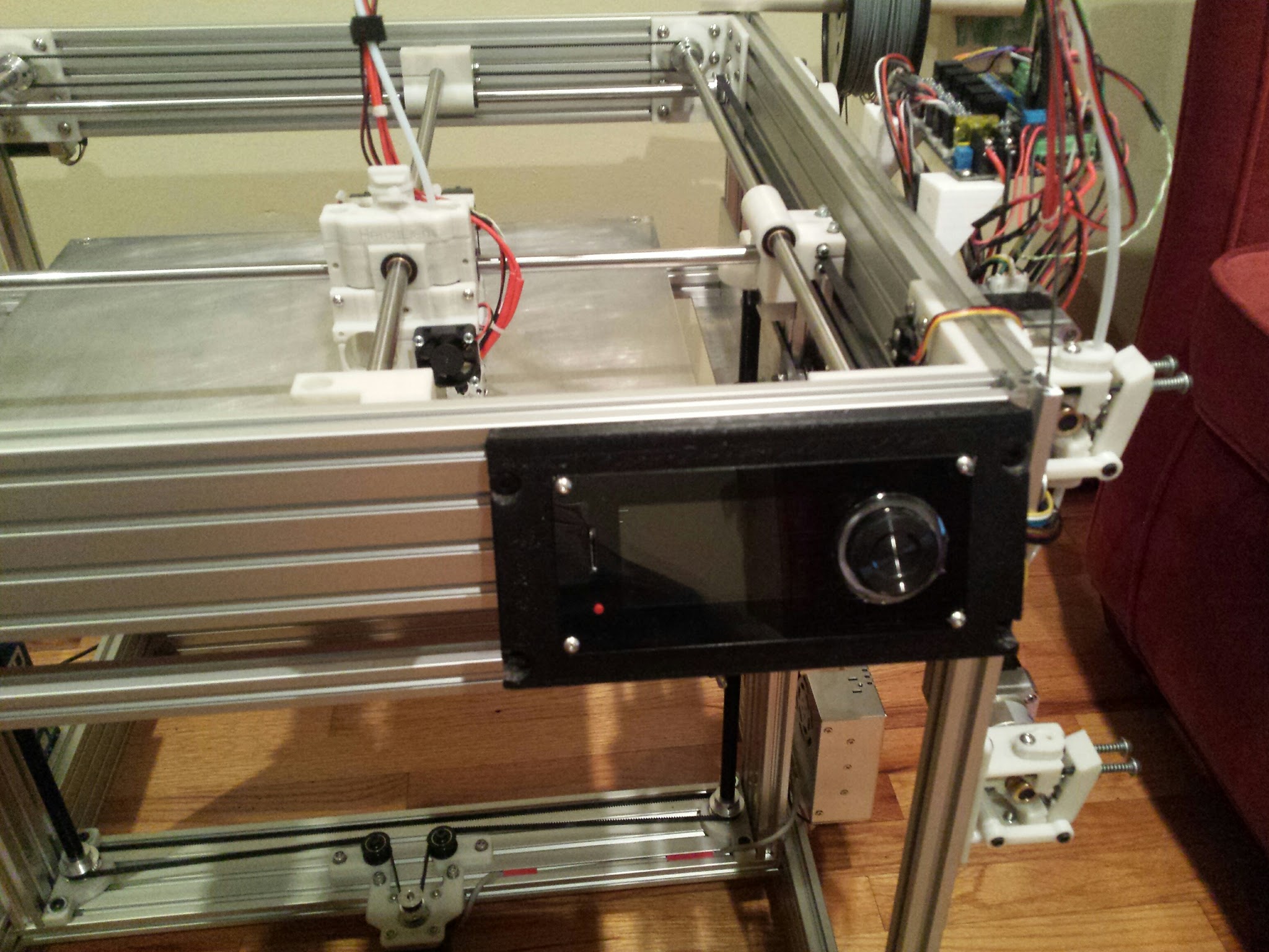 I made some modification to the Viki2 (Eustathios) mount to be used on my Herculien. It is not printing pretty yet as I am still learning how to dial in my printer settings and also creating a 3D drawing that is acceptable to a 3D printer format is another challenge. My next attempt is to print my new drawing of an Azteeg X3 box. I cant wait for my Bontech extruder to arrive as I know I am probably printing too fast on the stock extruder. Printing to me is like watching grass grow but the things you pull from the build plate is a gift!