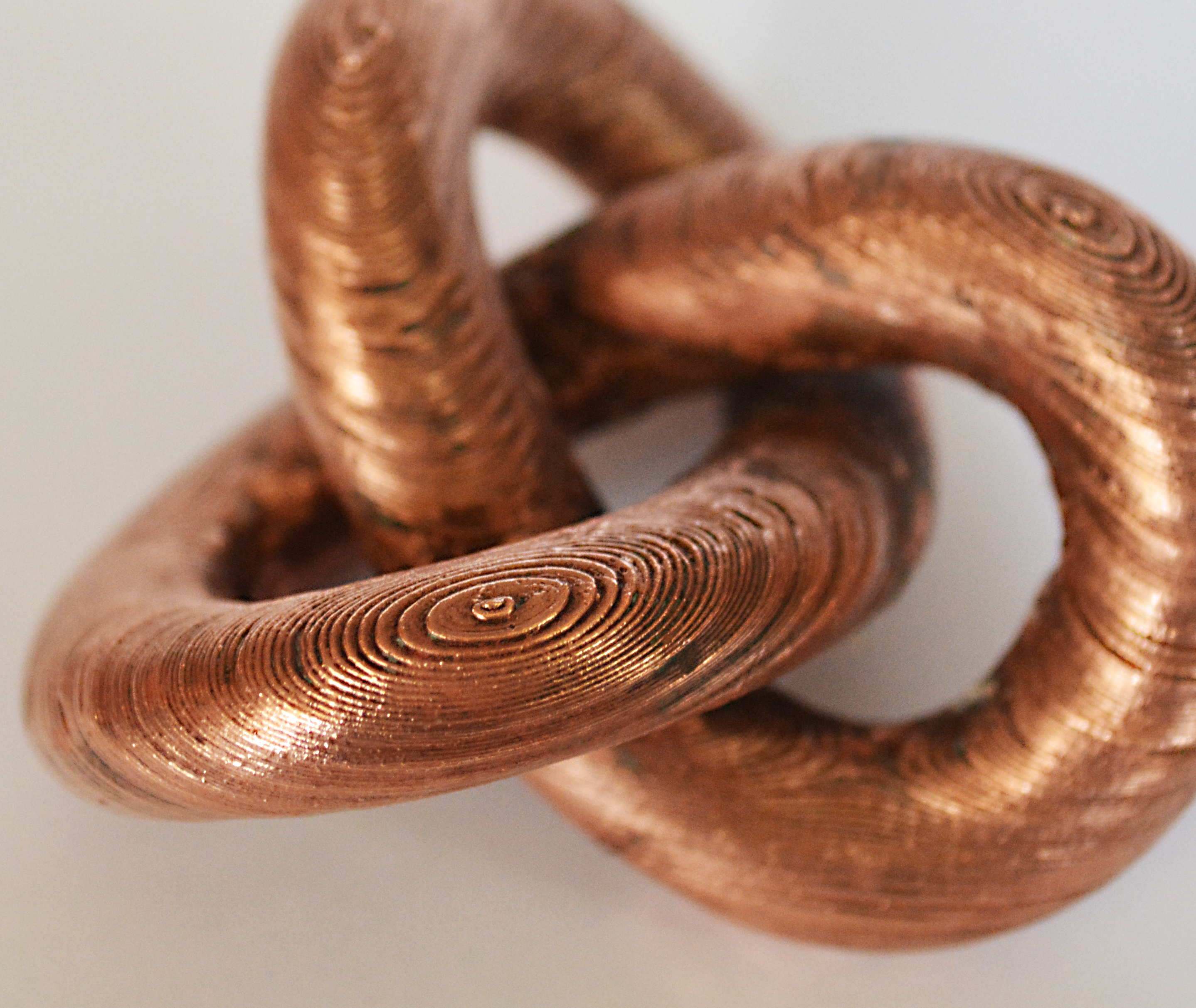 I’ve been electroplating (electroforming) PLA with some very interesting results. I have a bit of an obsession with metal. For years I’ve been using electrolysis as a method of creating metal sculpture. Originally I wanted to sculpt in metal but simply didn’t have access to a foundry. So, I would build things up in various materials (fiberglass, polymer clay, regular clay, etc.) and then give them a nice shiny coat of metal in the plating bath. This kind of turned into a 15+ year pursuit. Then, along came 3D printing. The leap was kind of a no-brainer. My obsession with creating things in metal persists, and as it does I’ll be sharing my various adventures as I document them on my website. The item pictured has a heavy layer of copper. ~.005 inch.