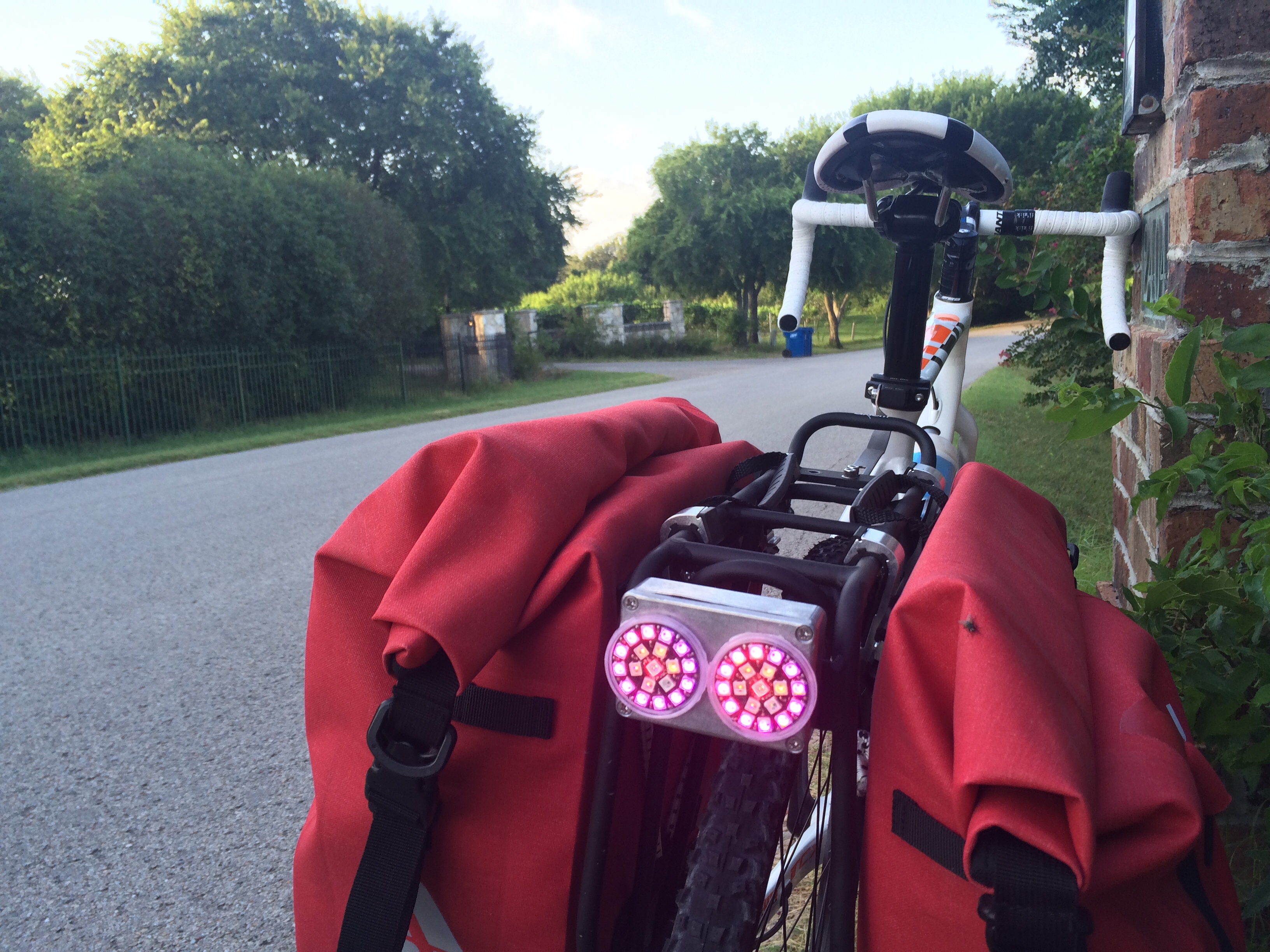 with my new custom bike lights built with Neopixels, a Pro Trinket, and the FastLED library.