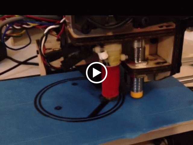 The extruder makes clicking noise when drawing long straight lines and it seems it is retracting or slipping (see video for sound an at 0:40 you can see the axis even “bouncing backwards”. Because of that the filament extrusion is not sufficient.