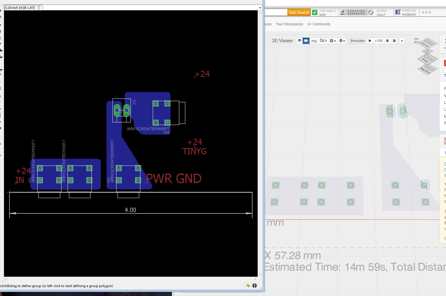 The polygons appear properly filled in Eagle, but not in the widget. The picture is from a windows 8 install running all the latest versions of eagle/Java/chrome. On my MAC with Safari, the polygons show up as grey filled, but the widget generated the same G-code. The polygons are “named” the same as the rest of the net. The result is the same if the polygon fill is done with thermals enabled.