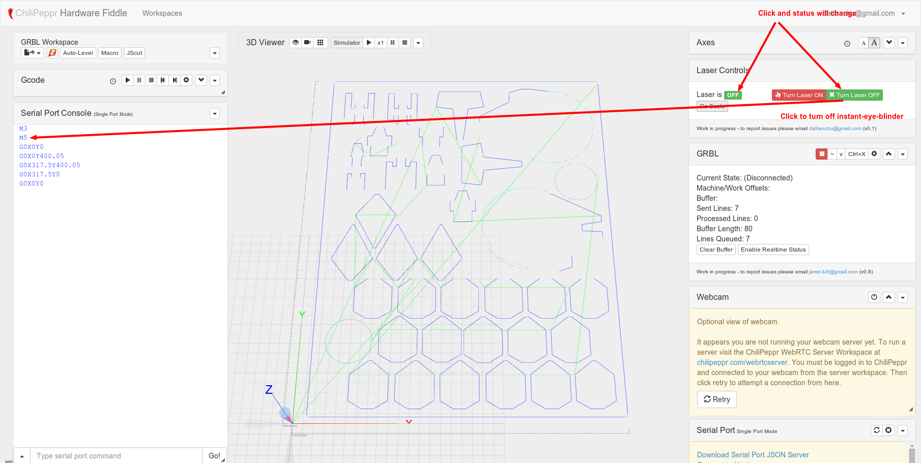 Next step is to implement auto-off on feed hold. Video on this widget in action with the laser cutter incoming.