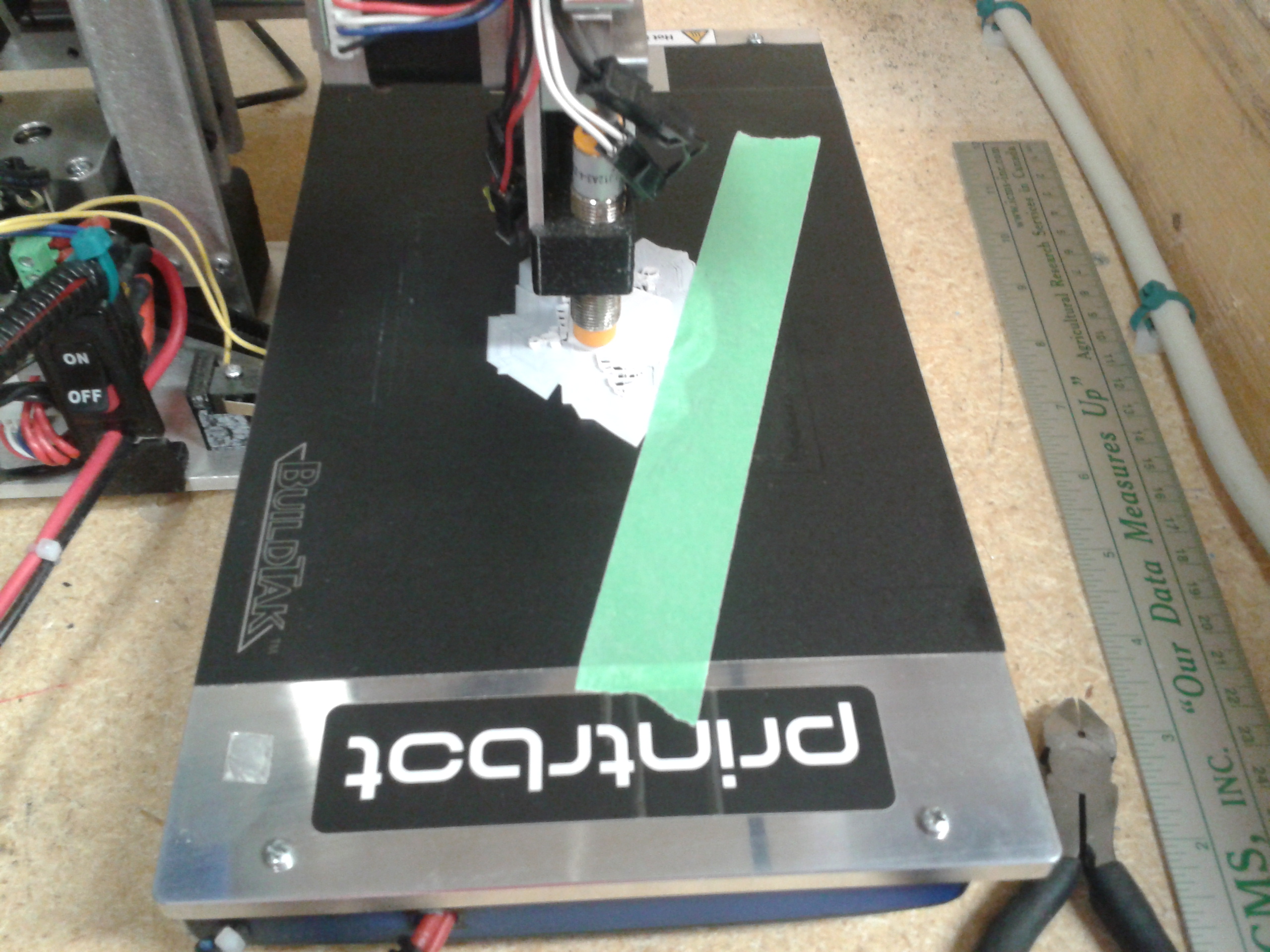 I’m getting closer, but the 3 point electromagnetical-metal-detecting in a emi noisy environment is far from perfect. Observant readers will note the little piece of aluminum duct tape on the bottom left corner of the bed to help trick the probe into plotting a more accurate plane. It has helped, but I’m still plowing into the bed at the top left, and nearly air-printing at the bottom right.