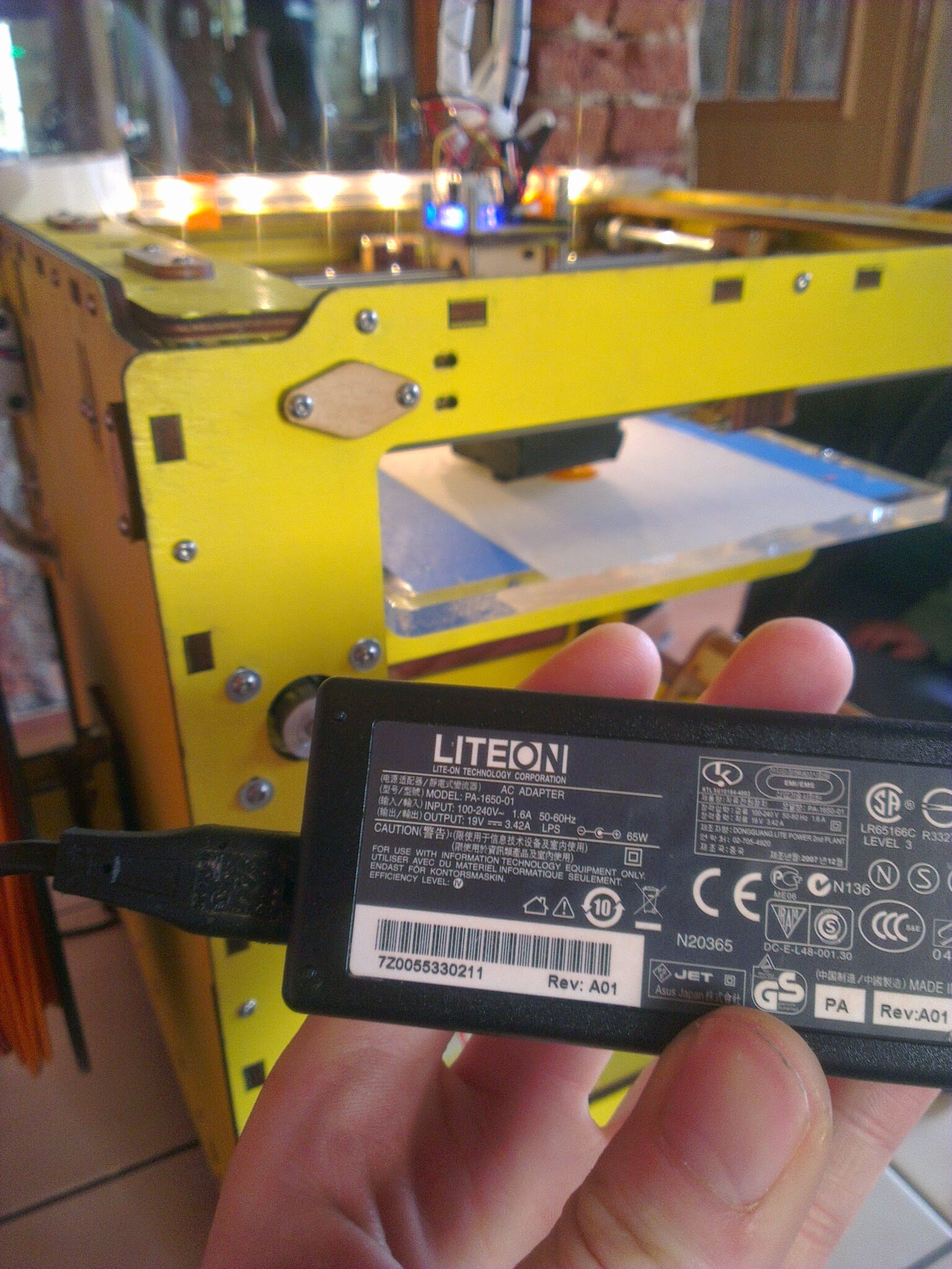 I coincidently discovered that such a tiny 65 Watt notebook power supply can power an #Ultimaker.