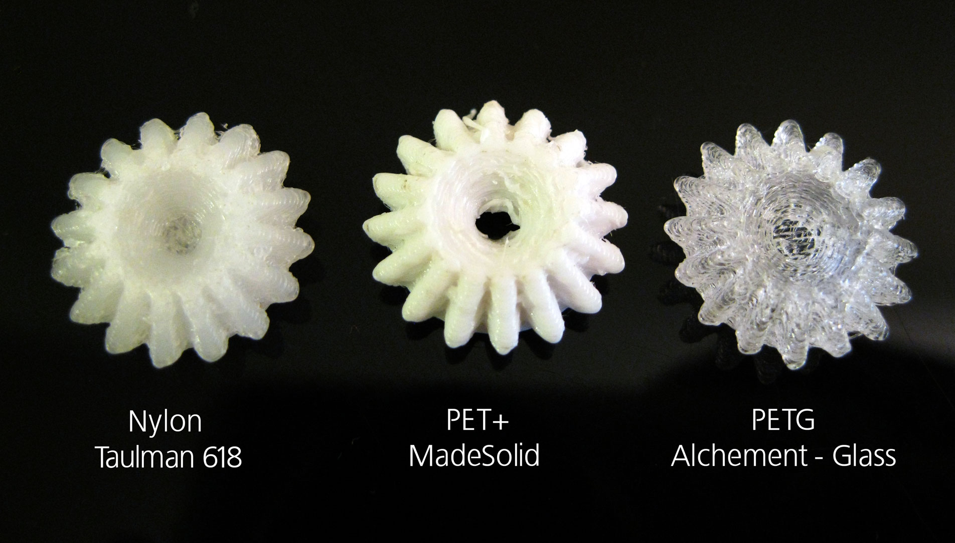 I tried a few different materials for the gears. Here is Nylon, PET+, and PETG. I think the PETG came out the best. I have used PETG in the past and it is super strong. It is harder than the Nylon but not as brittle as PLA. I don’t plan on printing any of the Truggy parts out of PLA. These parts have not been cleaned up. They are pretty much right off the printer.