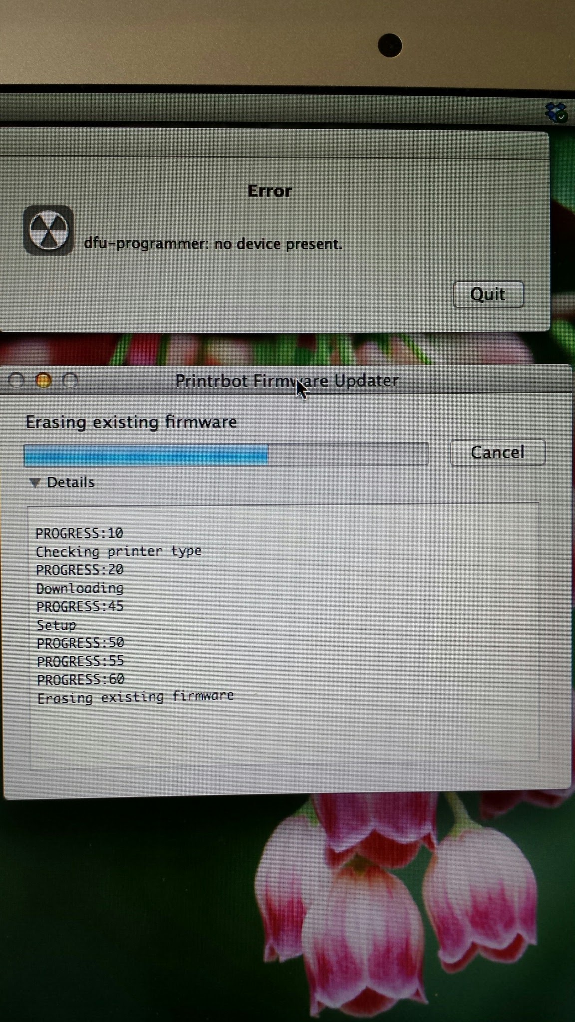 I tried updating my printrbot v2 and the mac was showing this.