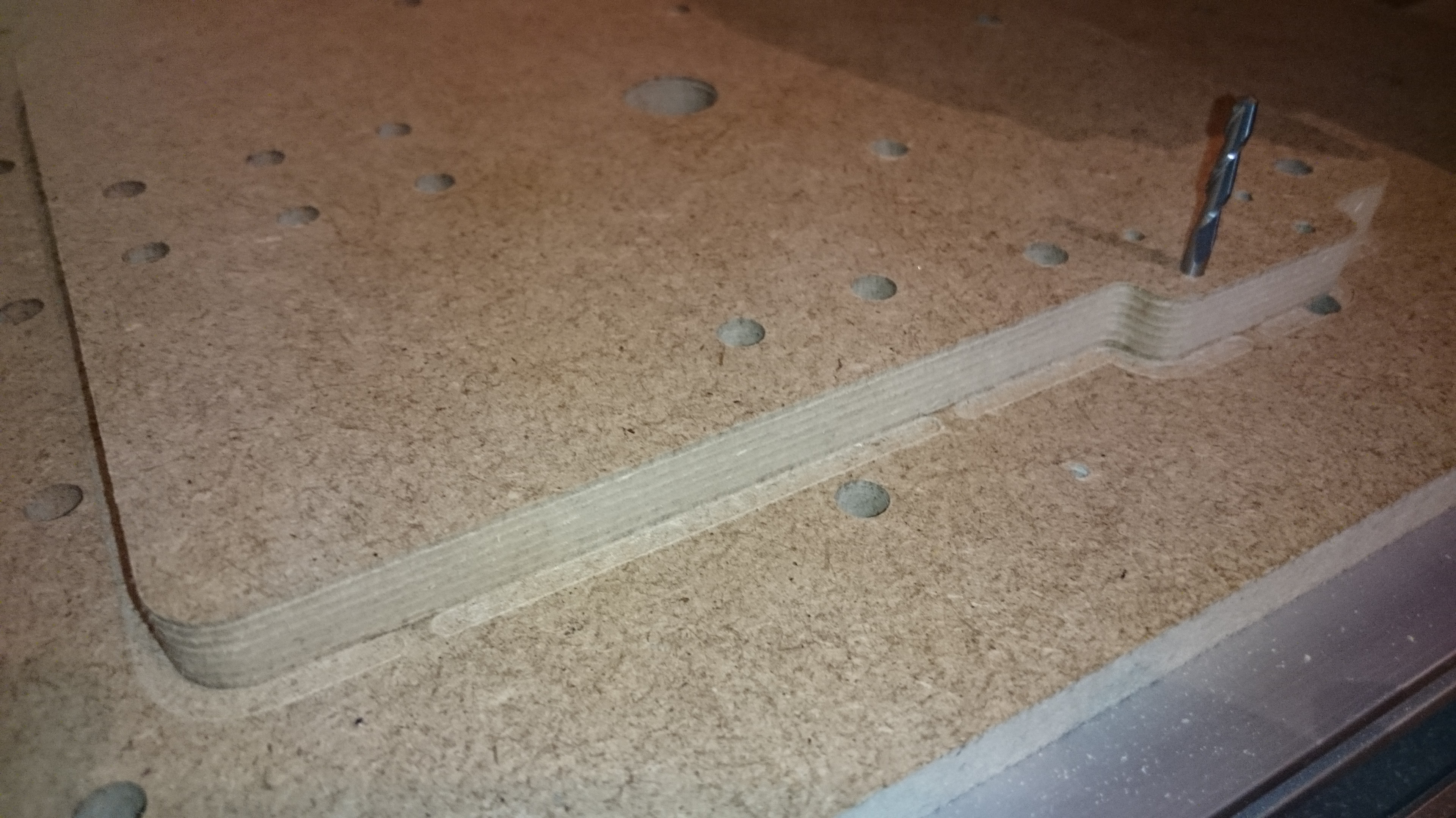 I was milling a 20cm long element from MDF today and found that my 3040 Y axis is off by ~0.5mm to the left after traveling the 200mm distance. You can see that the second picture shows the bottom-left corner edge being a little off (element is rotated 180 degrees along Y axis, so the error is half of the deviation shown on picture).