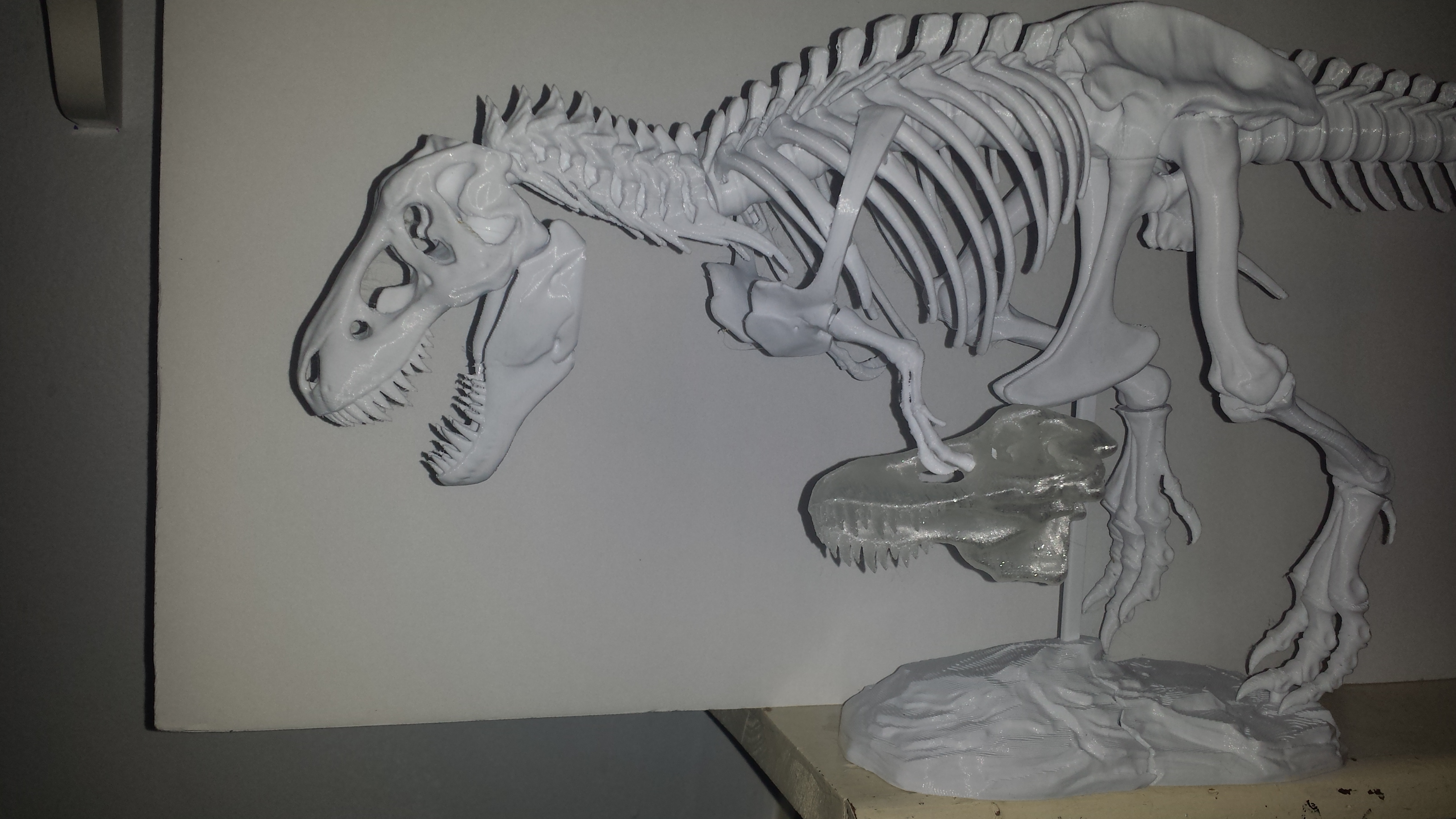 I went dark for a little while but im back. 3D printed Makerbot’s T-rex skeleton in white eSun PLA