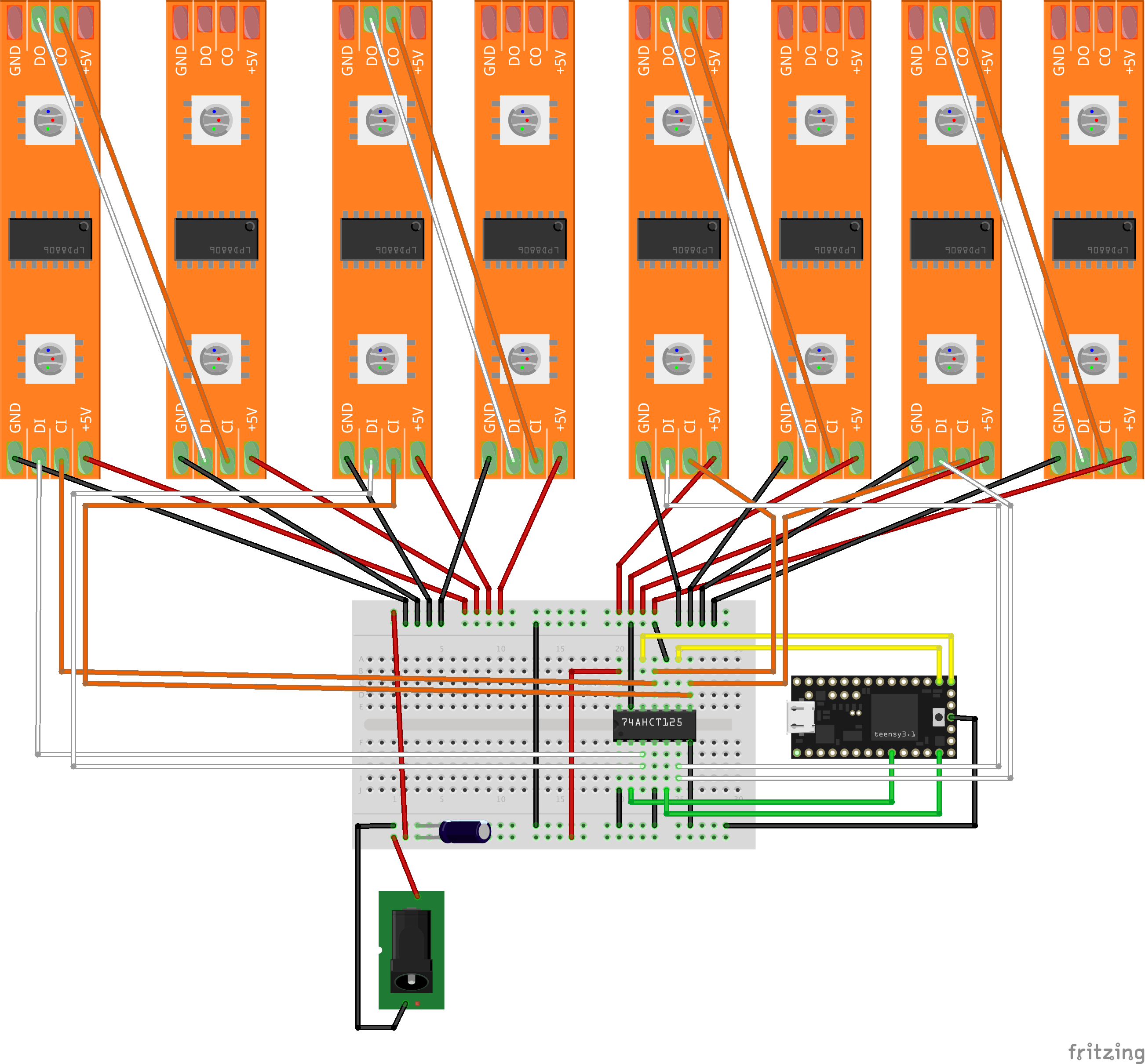 I don’t think you need to level shift the teensy if you power it with 5V as well. Maybe someone else can weigh in on that. I don’t remember level shifting for Neopixels or APA strips, but I could be wrong, it’s been a while with that micro for me.