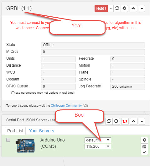 It works if I open the drop-down and click grbl every time. Can this step be saved as a setting? A simple cookie in the browser that says, hey, we know the answer to this from last time he was here, let’s highlight that for him to save few clicks.