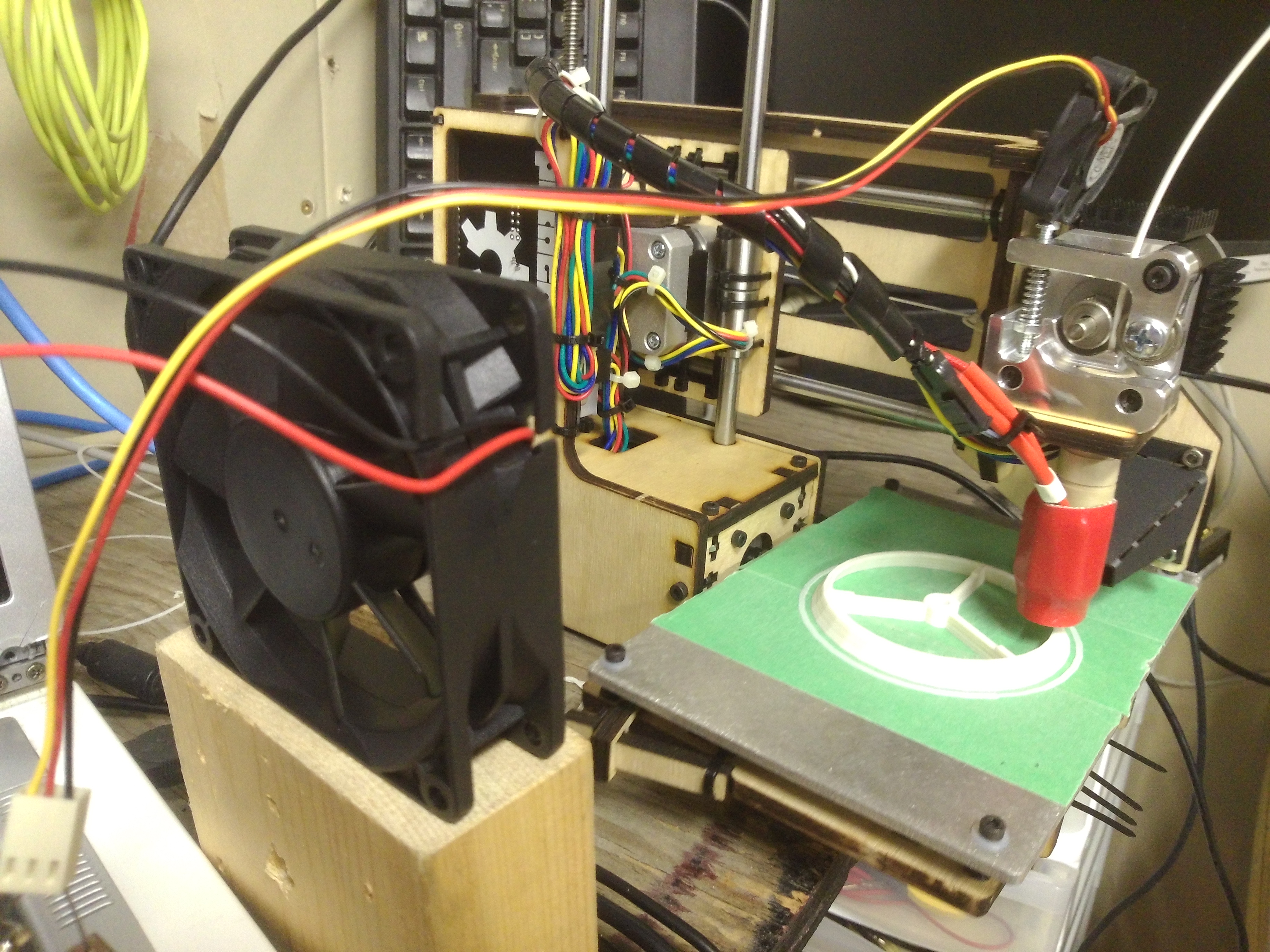 The big fan has been retired. I’m trying the little fan - precariously propped between the top heatsink and the wood frame…