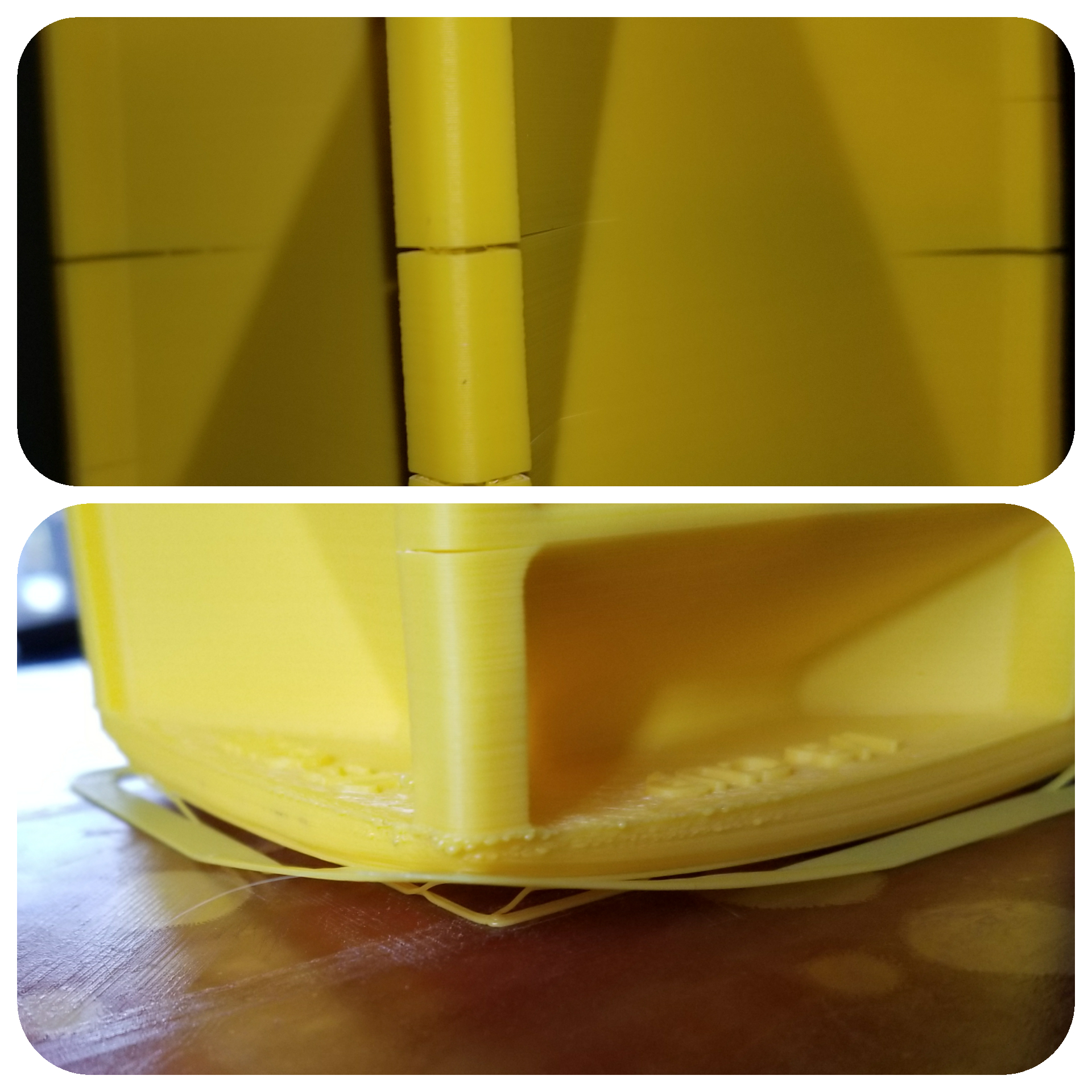 For the bottom picture try leveling you print bed