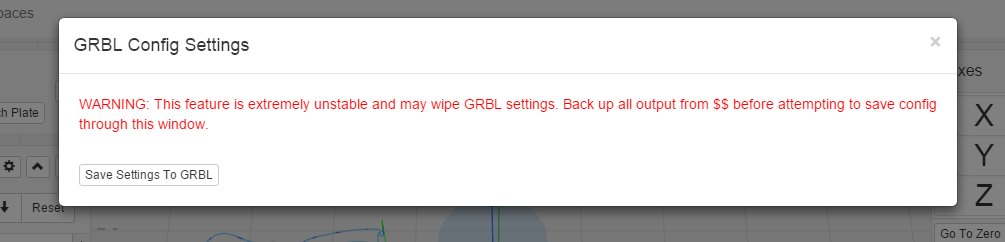 I seem to be having some issue with GRBL set up file, when I press the “Save Settings to GRBL” nothing seems to happen.