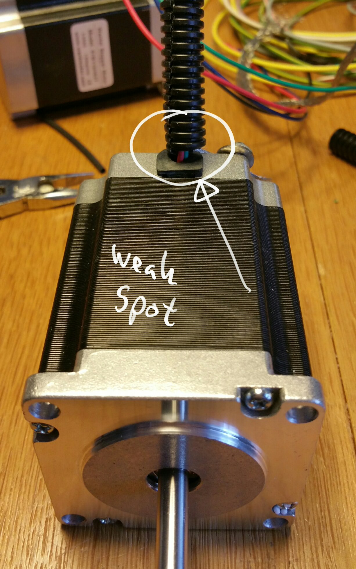 I’m preparing motors for replacing on my MaxNC10 as i convert it to bipolar mode. In this process i found that the wire always bend near the motor housing, because the hose is stiffer than the wires. To cope with that i made these supports in order to avoid broken wires after hours and hours of use.