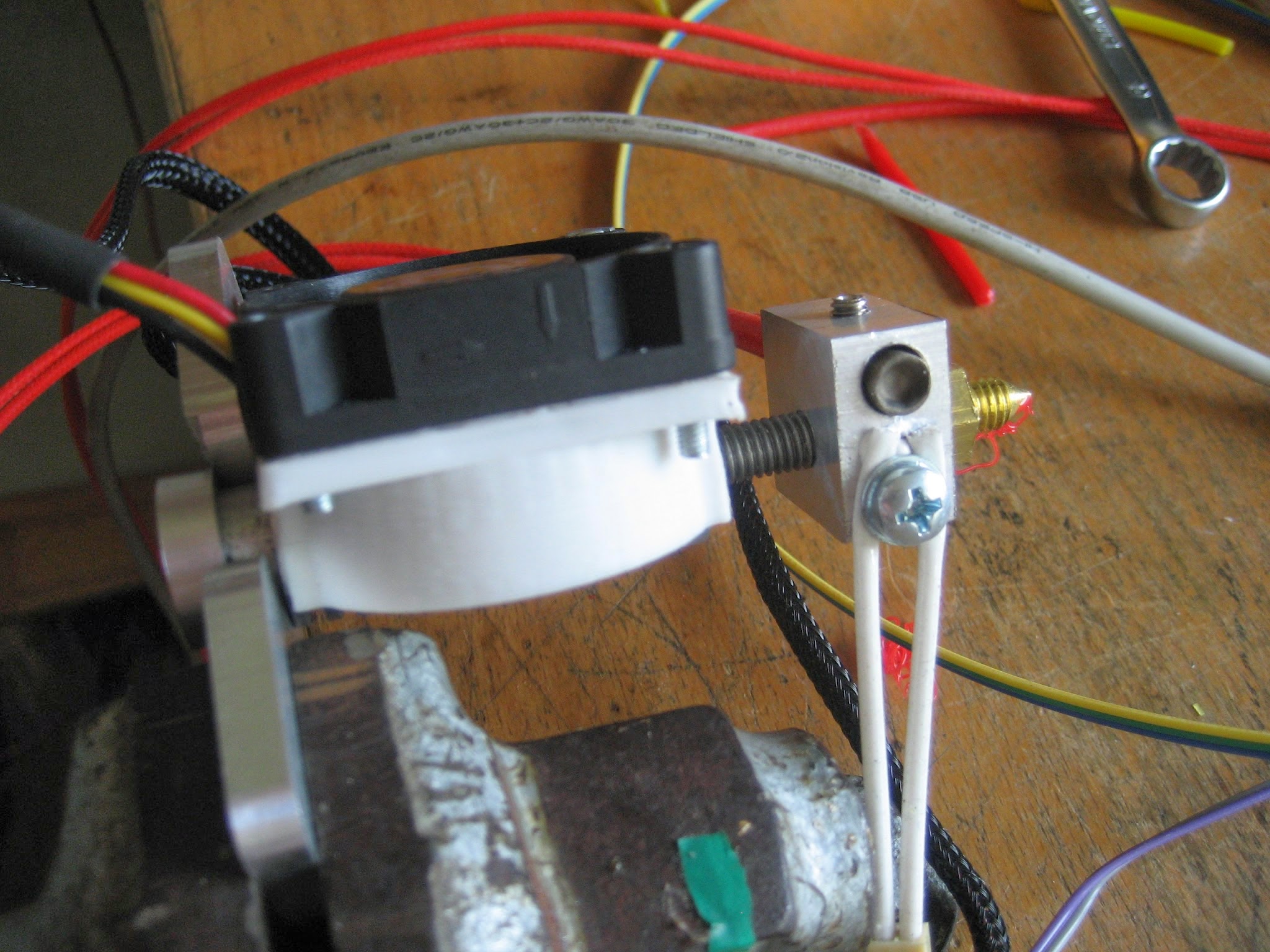 Heat brake is between heat block and fan. Under the fan is heat sink. Heat sink is 16mm diameter and whole is cooled by 40mm fan.