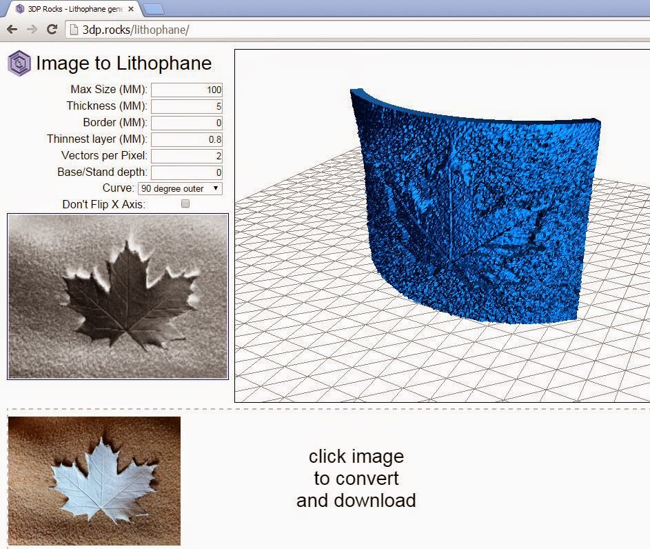 In a moment of Lithophane experimenting this morning I took a clay leaf impression, (which my wife likes to make and decorate), and photographed it on a soft blanket. Photographed with low lighting angle to increase shadows, it gave an interesting mottled surface to the 3d model when processed through @Mark_Durbin 's excellent “Image to Lithophane” utility. Within a few seconds I had an STL file ready for slicing and printing.