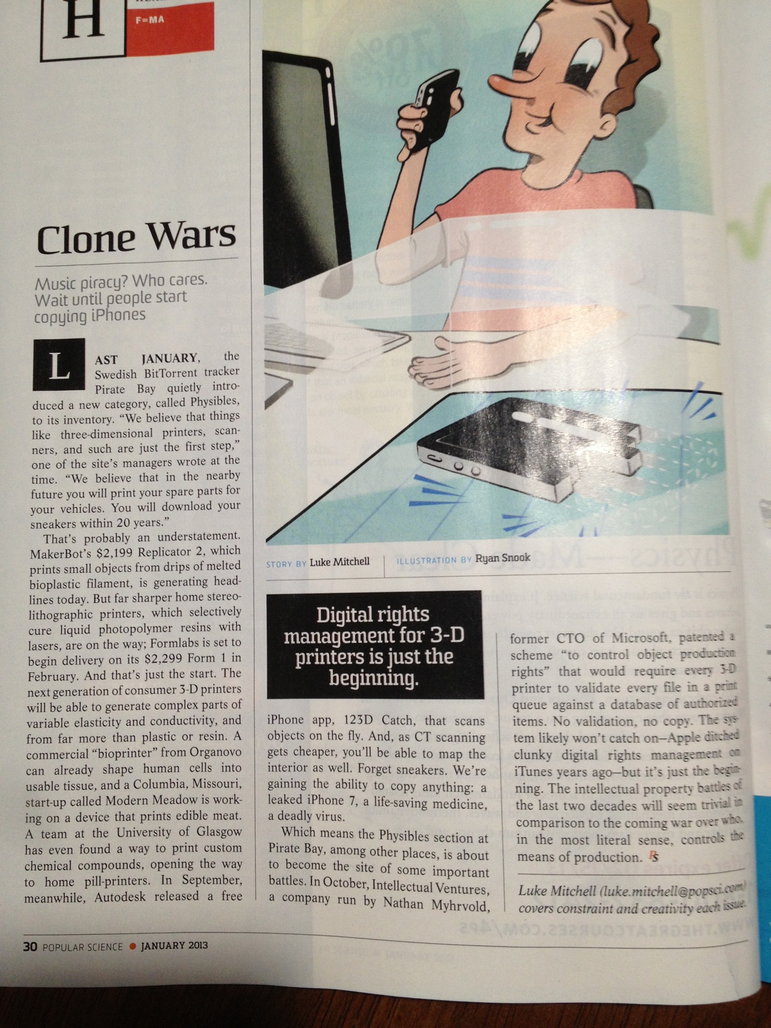 “In October, intellectual Ventures, a company run by Nathan Myhrvold, former CTO of Microsoft, patented a scheme ‘to control object production right’ that would require every 3D printer to validate every file in a print queue against a database of authorized items. No validation, no copy.”