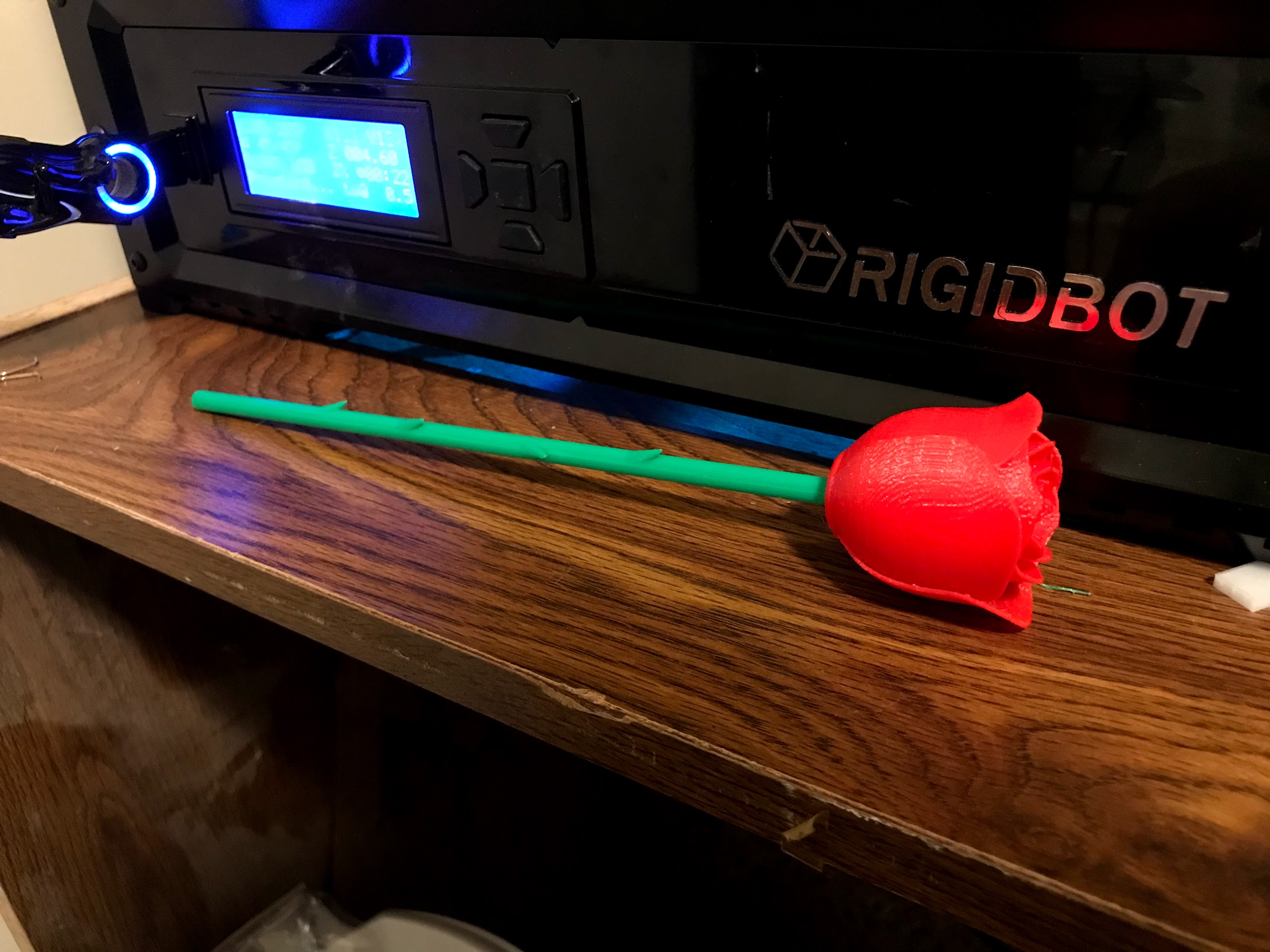 In preparation for Valentine’s Day, I’m starting to run some roses. I think they are coming out great! There are a few designs on Thingiverse that I think I’ll use to make my wife a bouquet with red, white, and pink roses. Maybe I could find some rose-scented essential oils or something and take it even further.