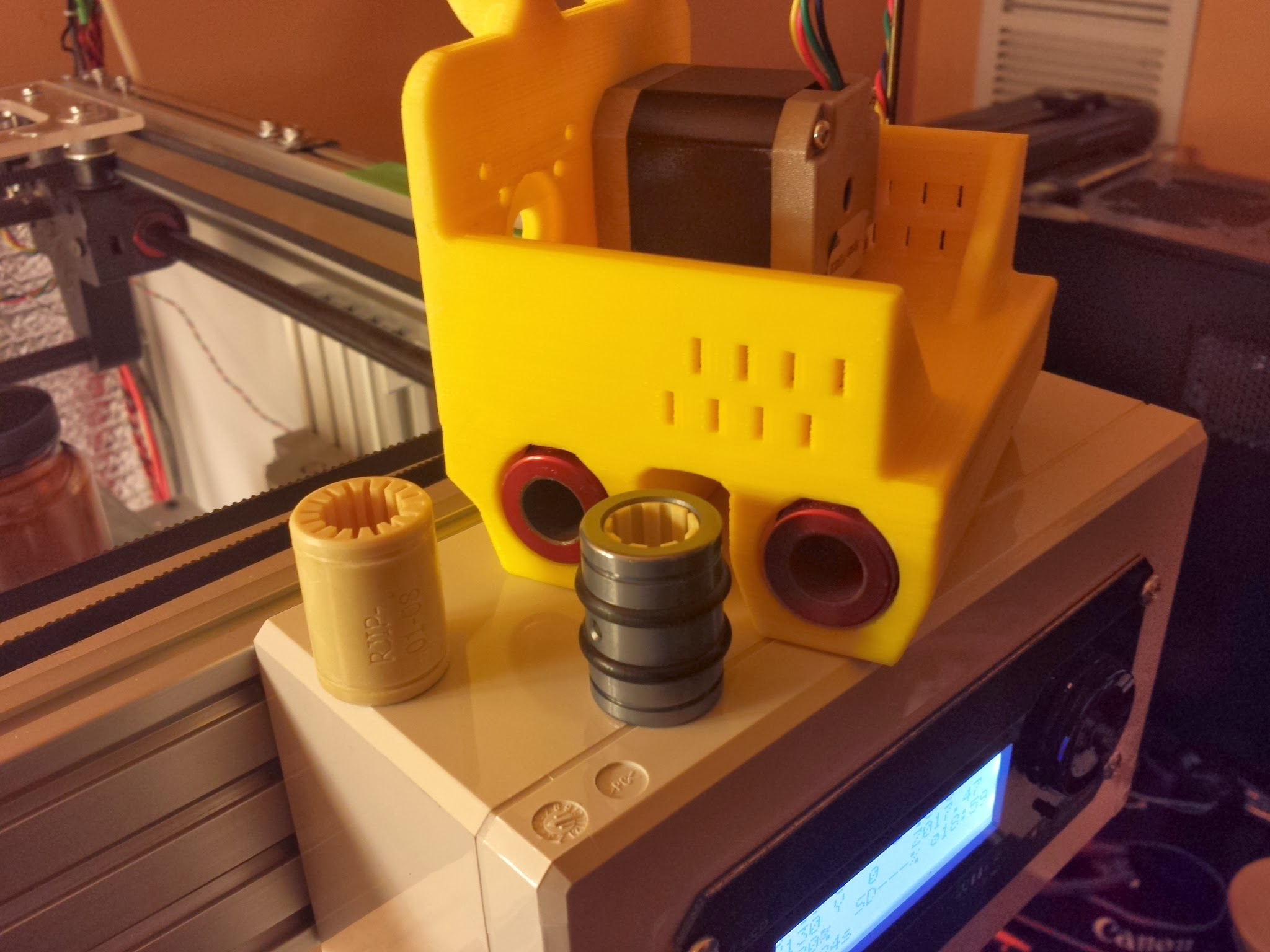 @ThantiK free samples from local Igus rep. I love that they are so open to letting you try things at no cost. It’s for 1/2" rod. They gave me 2 x RJUI-01-08 and 2 x RJIP-01-08 to try. The RJUI-01-08 has the sleeves integrated with the bearing. And the inserts are replaceable for when they wear out (you can see the small hole where you push on the insert to get it out)