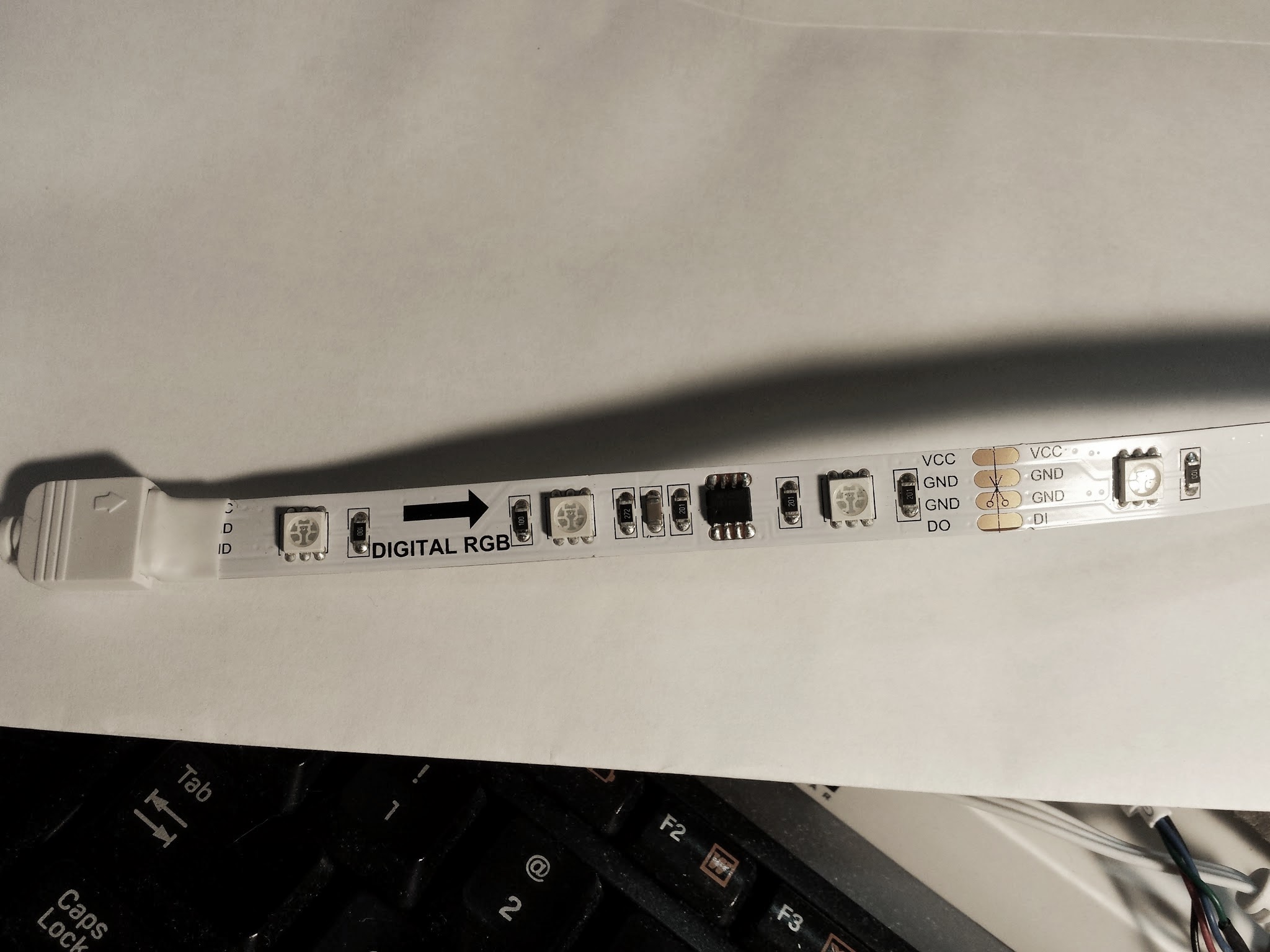 Anyway, I can confirm that the power supply is (roughly) 12v and probing at the strip cut point pads with a DMM reads 12-13v between VCC and either GND.