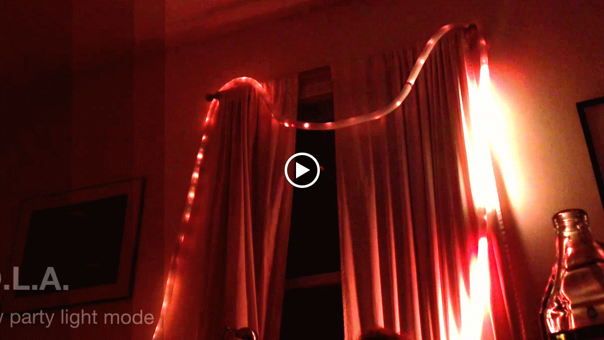 Last night, L.O.L.A was deployed at an after-Thanksgiving cocktail hour, in a very mellow “slow party lights” mode, with the colors mostly in the warm reds, oranges, and yellows, and I took a few seconds of video. In this mode it’s definitely not exciting; it’s designed to just be interesting background ambient lighting.