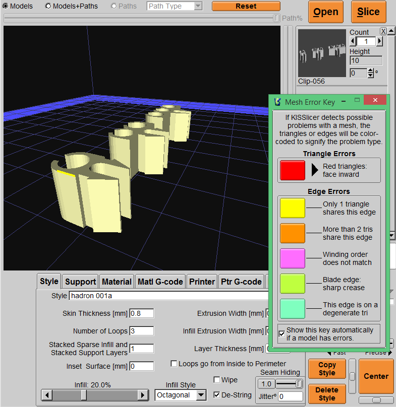 Interesting and probably known to all but me. I am working with a model in openscad 2013.06 on Windows and after a small change in the code, F6 re-render, and export to STL #KISSlicer starts warning me about “Only 1 triangle shares this edge”.