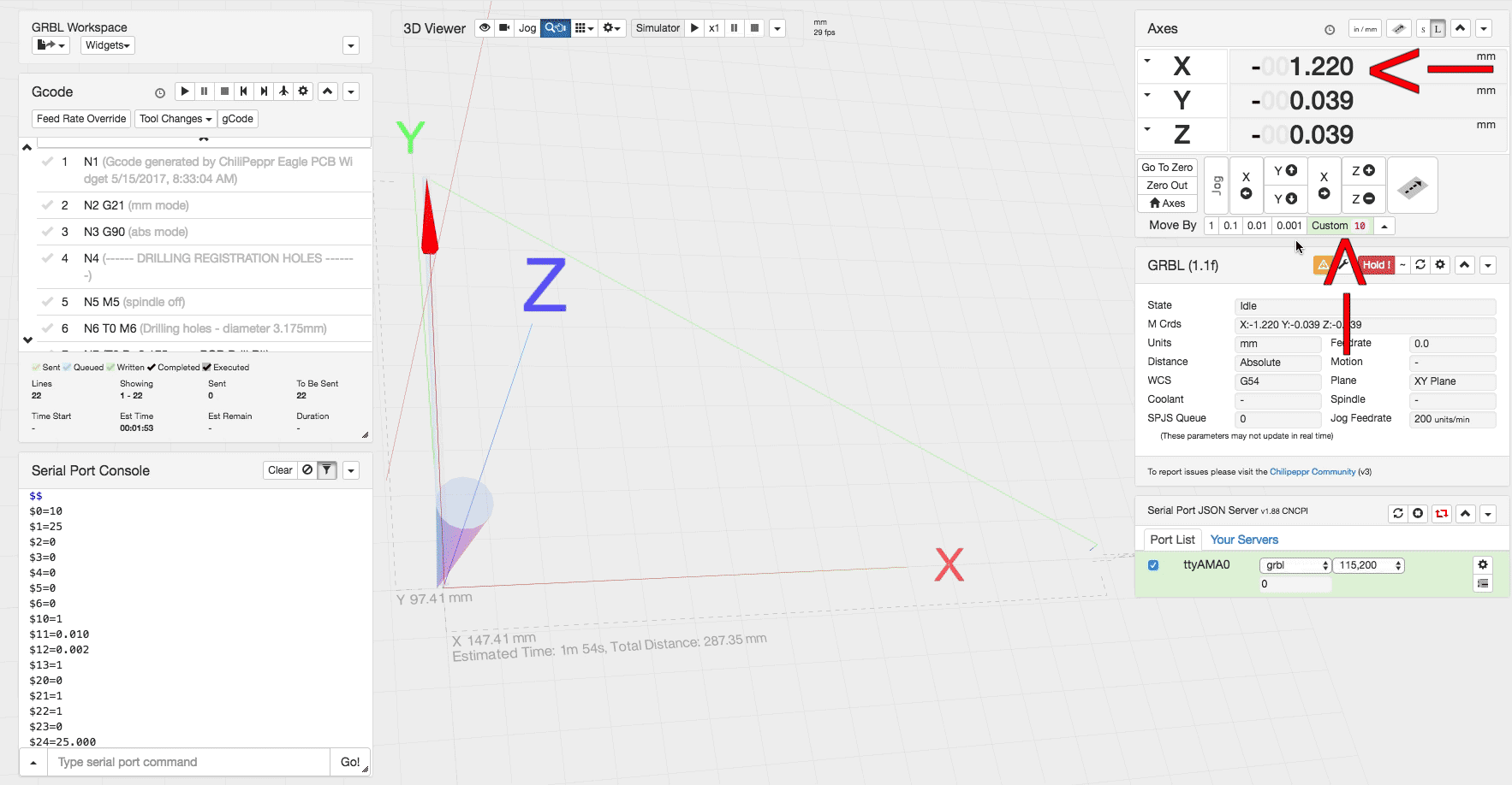 Is jpadie still the best branch to use for GRBL http://chilipeppr.com/jpadie? Was working fine a couple weeks ago, but now I am getting an incorrect reading on the axes. I’m trying to move 10mm and the axes are only showing a movement of ~0.4mm. The movement is correct on my CNC machine, but not in the Chilipeppr UI. Dragging in a new Eagle board seemed to cause some weirdness as well. I tried to empty cache and hard-reload but that didn’t seem to help. Is this a known issue?