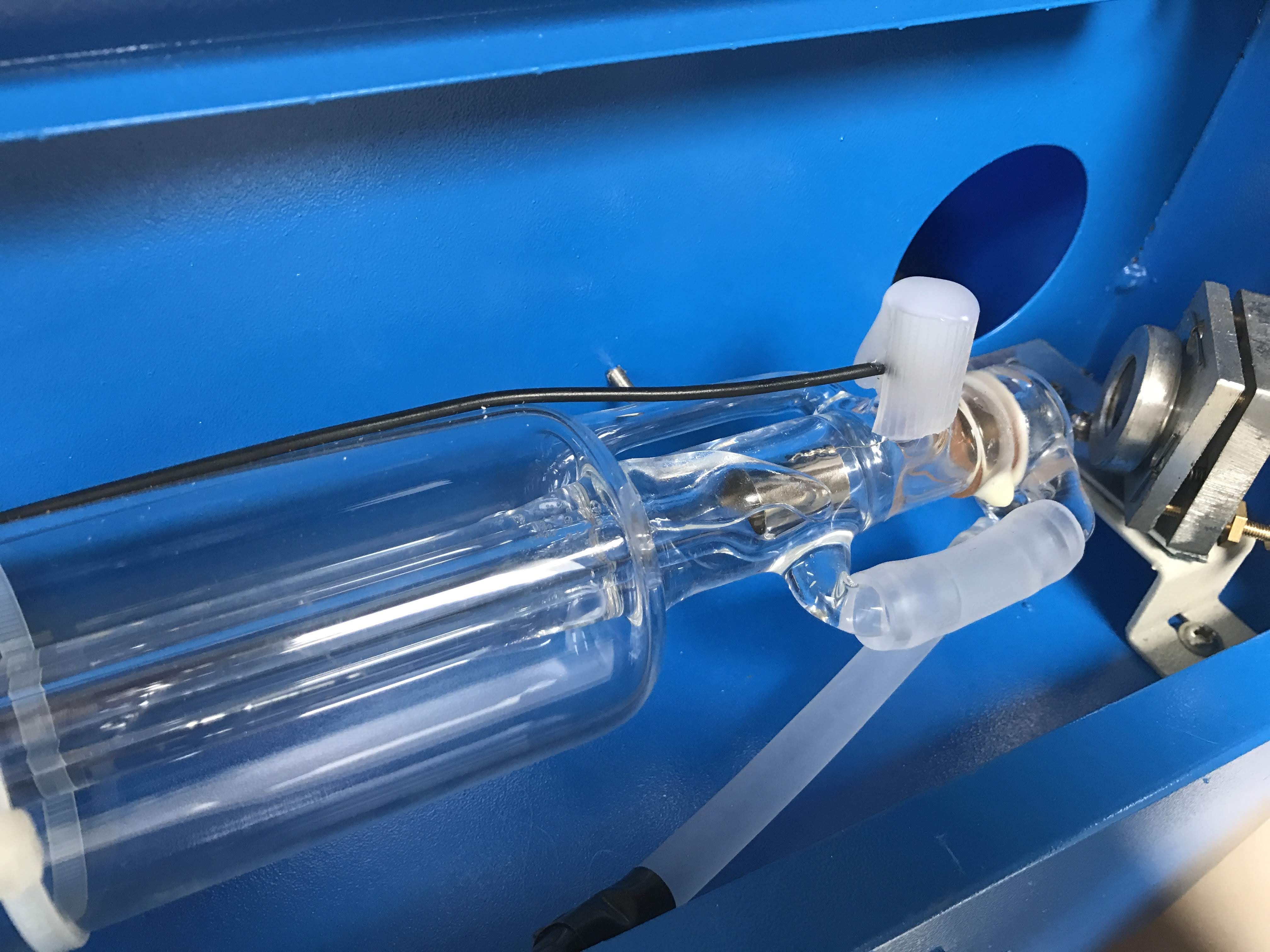 Mine had one of these, and I just left the water pump on for a couple days until it disappeared. Don’t fire the laser with that bubble there. I suspect 50% of peoples initial problems with the machine are because of firing with that air bubble there and overheating the tube.