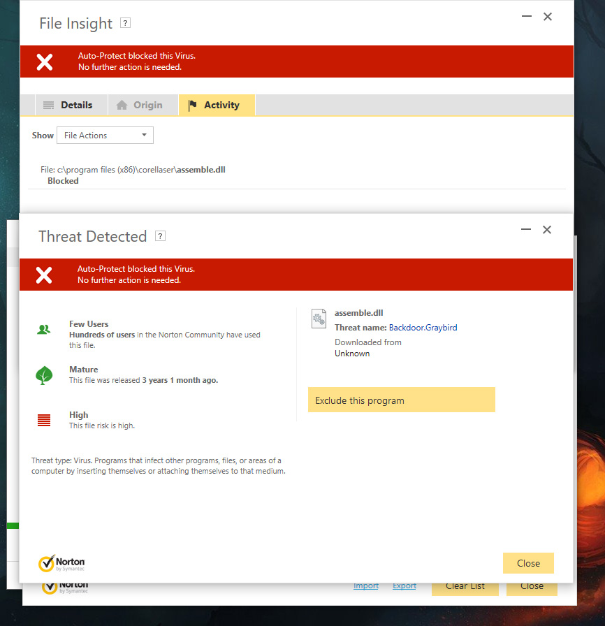 My problem is with CorelLaser installing a backdoor virus on my system every time I install it.