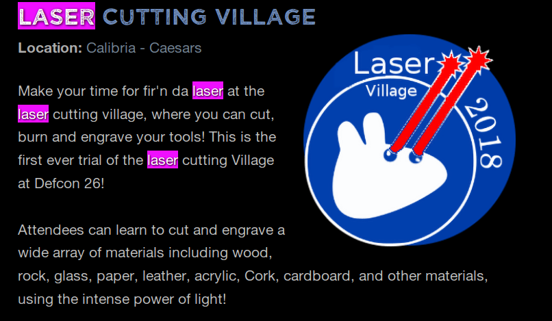 Is there anyone in this space that would be in the Las Vegas area August 9th-12th? The Laser Cutting Village @DEFCON is reaching out to the community for support.