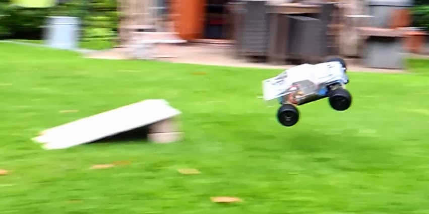 The left rear wishbone broke after about 10 jumps, but it was great fun, my daughter was driving.