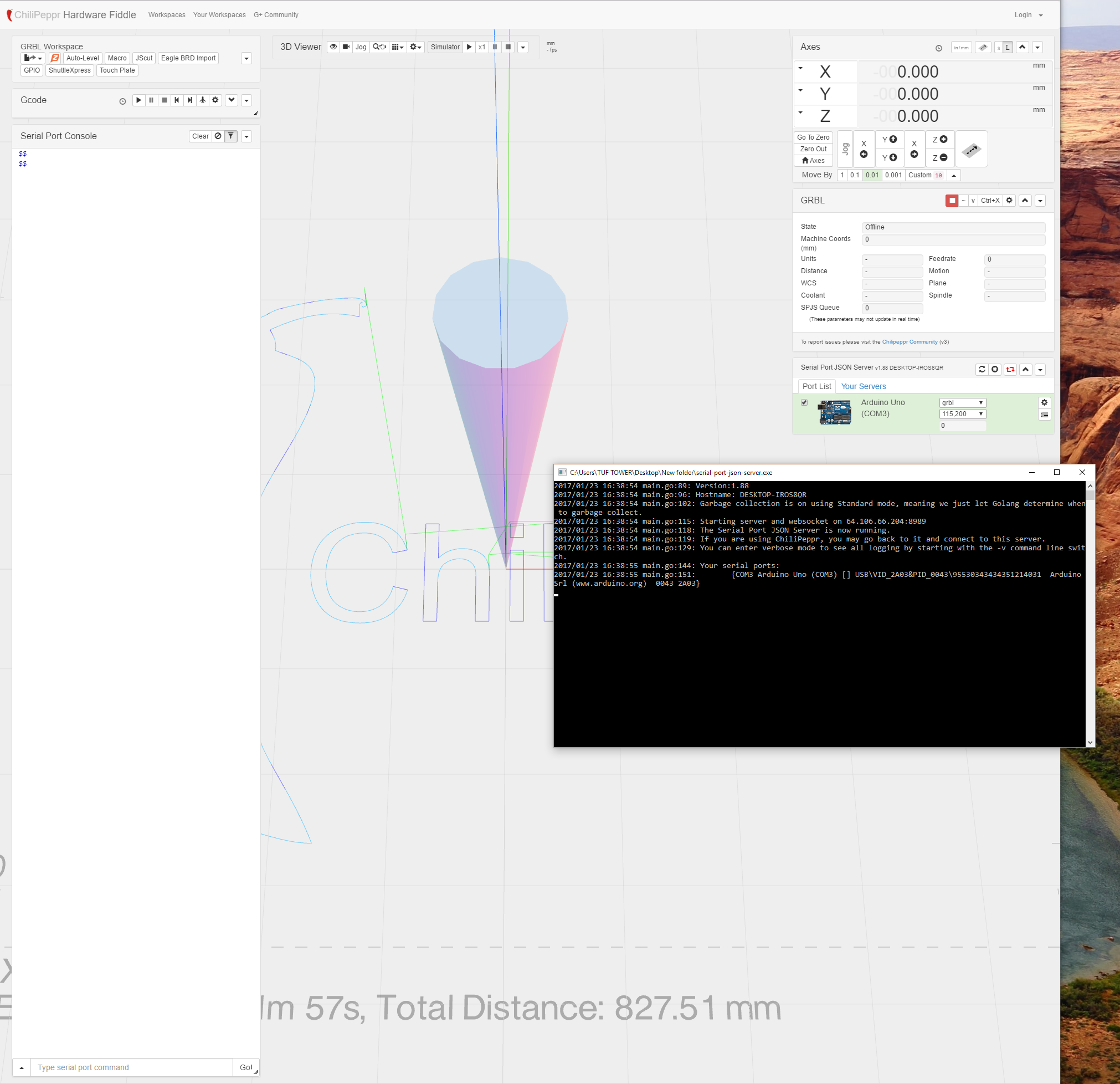 it seems I am able to connect the arduino uno with GRBL and is detected by chilippr but it tells me is offline and it does not let do anything. i been using univeralgcodesender and it works fine.