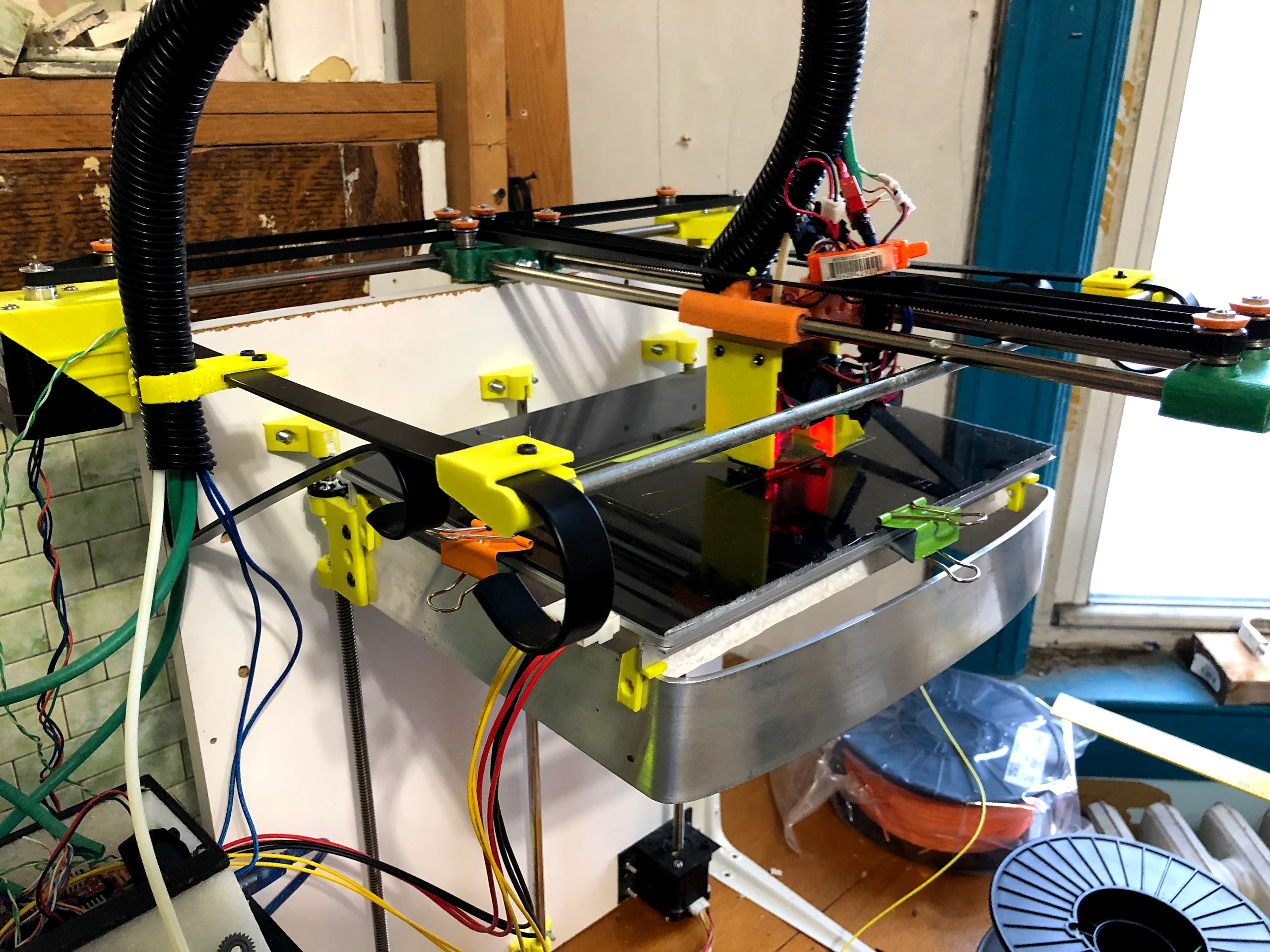 I think with some more iteration, it could be converted into a flat-packable briefcase printer. (Add hinges and latches to the Z platform and the x/y cantilever, and I’d be halfway there)