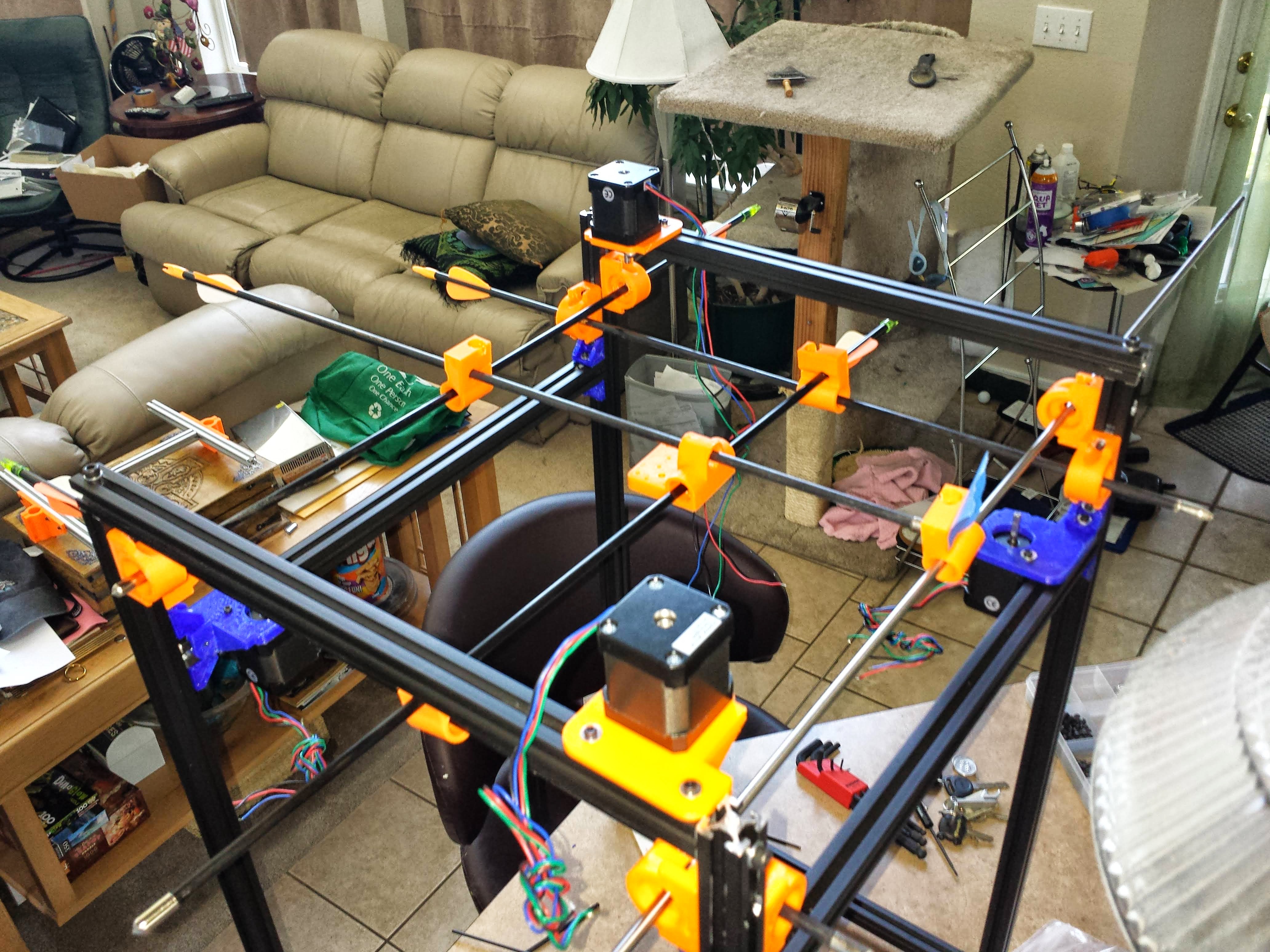 Easy there kiddo, I ran out of washers…before I added all of the cross braces. There are still 4 more extrusions to be added…
