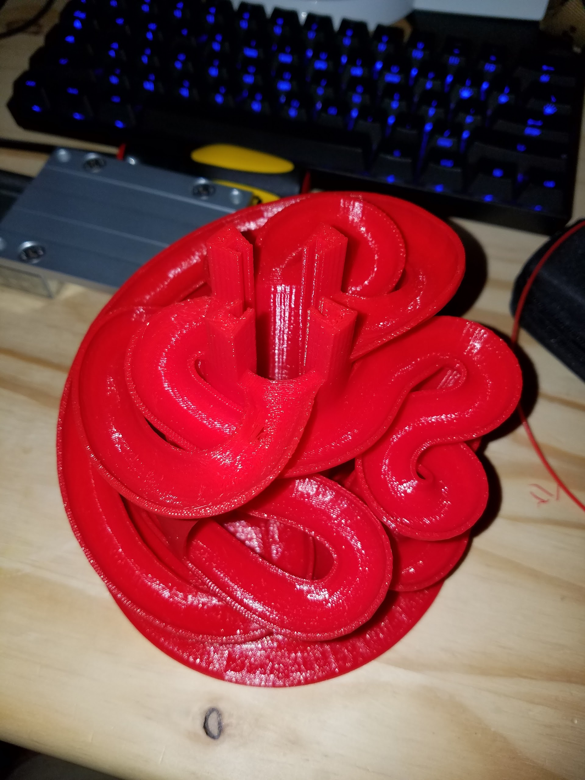 Ive been on hiatus since the start of the school year. I finally got around to getting my printer out. I got some red Hatchbox PLA. First print in weeks and I’m super impressed with this print. There is definitely some ghosting on some sharp corners but other than that this print came out perfect.