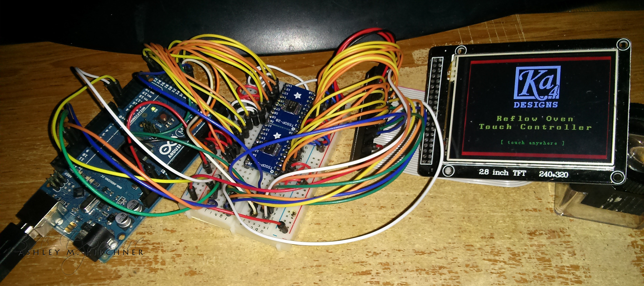 I’ve done this before with several LED projects: the need to level shift signal wires, whether it’s because the controller is at 3.3V while the LEDs are at 5V or because both controller and LEDs are at 5V while the SD card is at 3.3V. However, all of those are 4 lines at the most. But this … this takes the cake: level shifting 16-bits for the TFT screen. It works if you don’t shift, but every code upload will also require a complete power down for it to wake up again. Its max voltage is within 0.4V of what the MEGA puts out. But to do it right, it needs to be shifted (5V <–> 3.3V) and seeing as how I did not have a 16-bit level shifter laying around, I had to use 2x 8-bits. And that’s just for the TFT data. It’s 4 control wires aren’t shifted yet. It works just fine, just gets a little warm after hours of programming … Oh the joys of breadboarding stuff … I do have an actual shield for the TFT on the way, but I’m impatient.