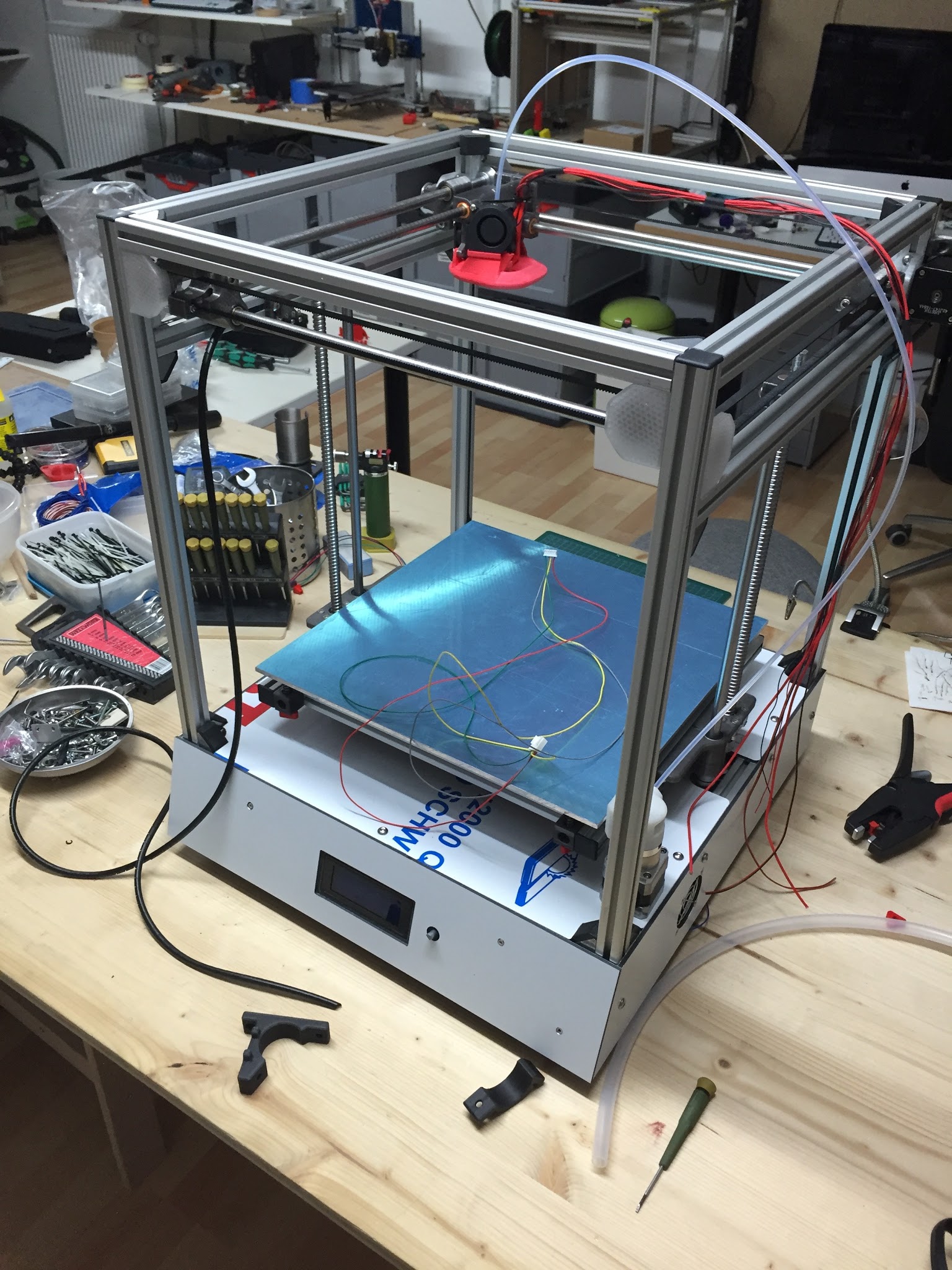 I’ve got some new pics from our build session last night. We’re getting close. Some cabling works to do and still some things to find out. I still don’t know how i wanted to mount the Bondtech extruder. The printable V-Mount that @Martin_Bondeus offers to print works well but mounted at the right front corner would make the motor point to the front which is ugly and impractible here. Maybe i have to draw myself a custom mount.