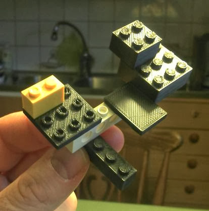 The bricks in the picture is proof of concept. The yellow and white is original. As an original brick purist I’m not so much interested in making copies of existing ones but rather make stuff that doesn’t exist. Like tree mounts for the cable cars me and the kids set up in the garden, slimmer battery boxes for LiPO cells, lighting mounts and LED housings, servo mounts… the list goes on.