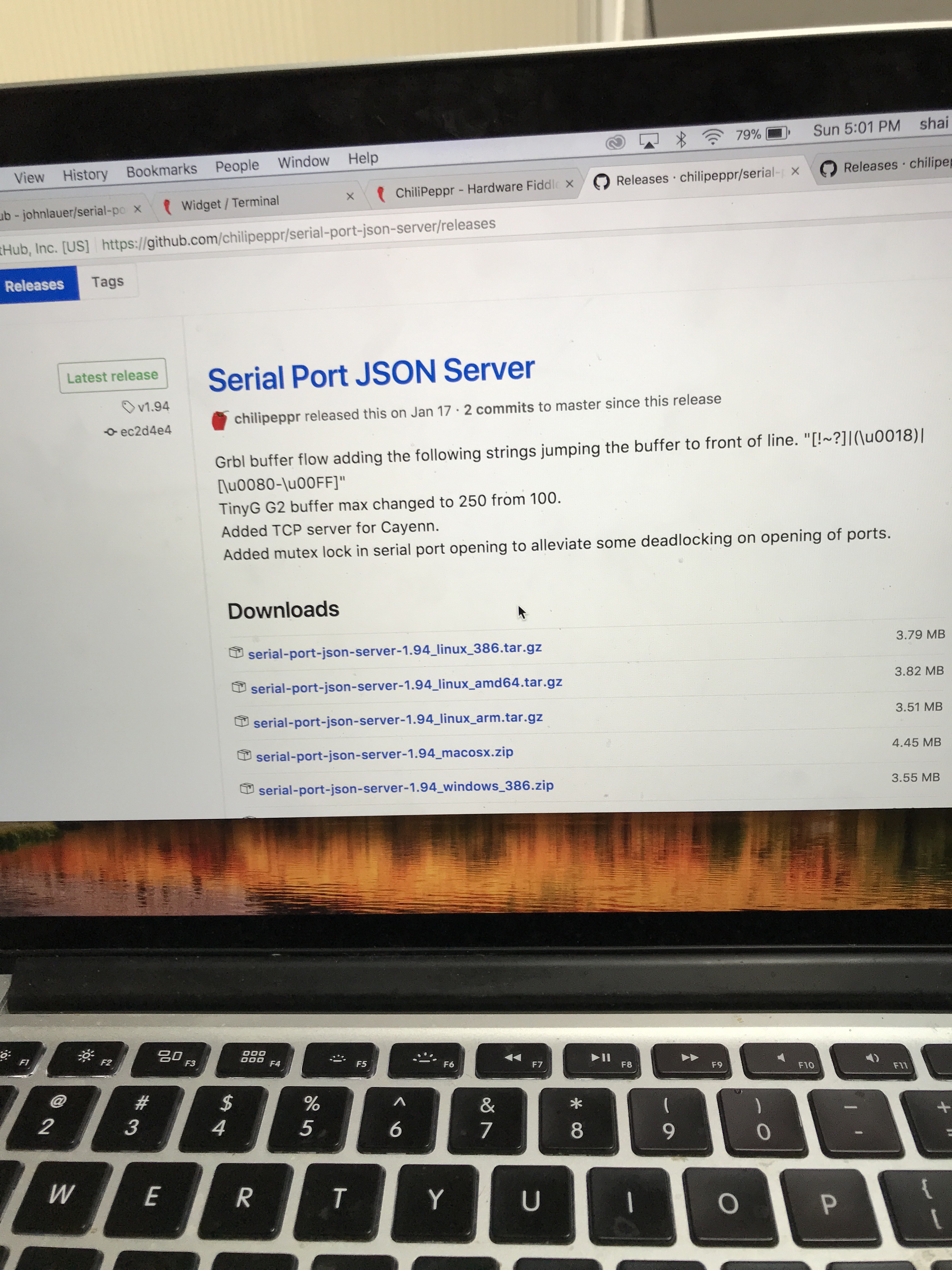 Download the Mac version. Serial port json server supports both grbl and tinyg
