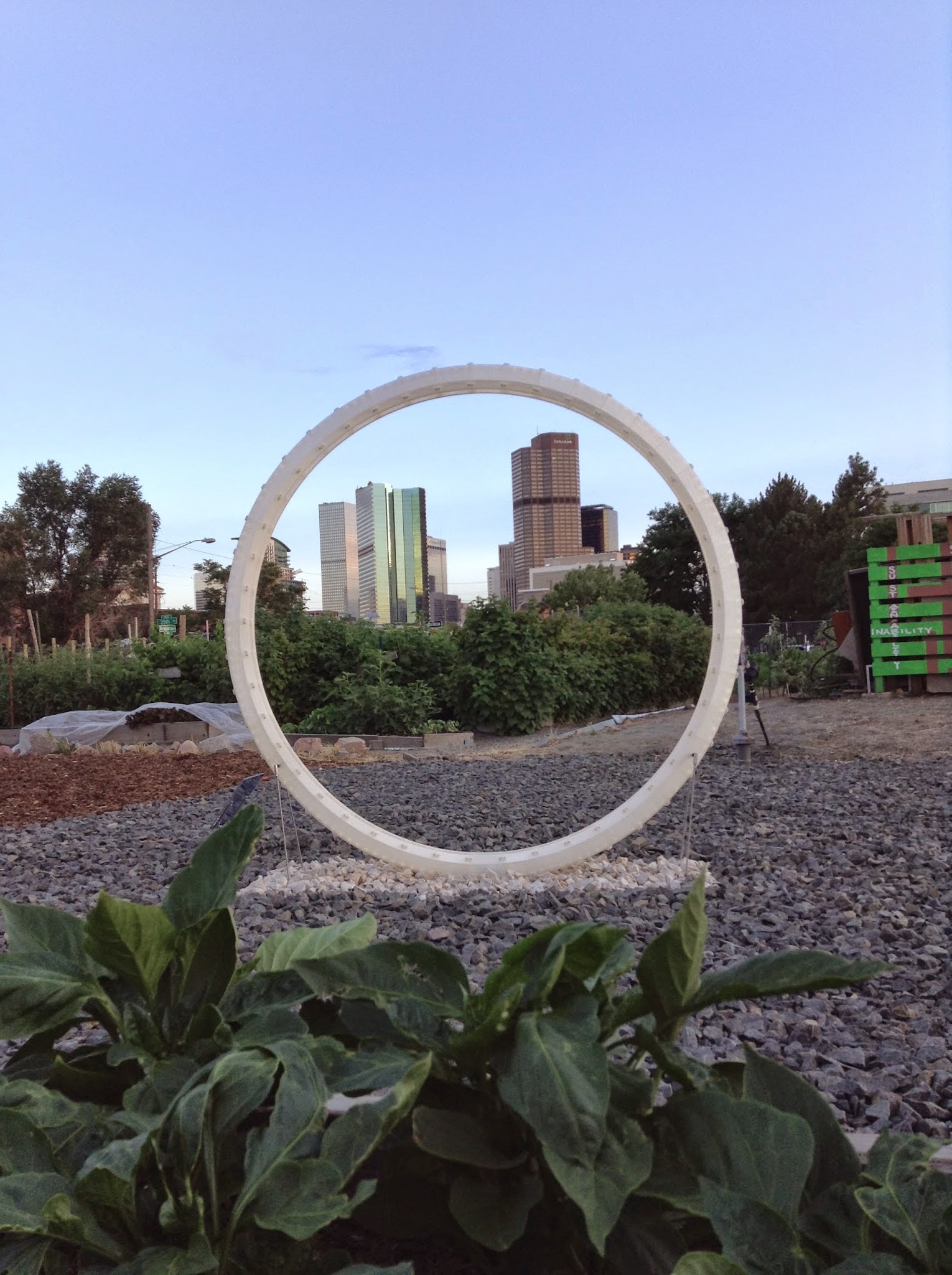 Thanks all… the piece is located in Sustainability Park between the working farm and the sustainable architecture. Thats on 25th between Arapahoe and Lawrence. They are still trying to figure out the hours as the park is often locked after 5pm but Im pretty sure there are ways into it. Definitely the most epic thing Ive ever made on a 3d printer.