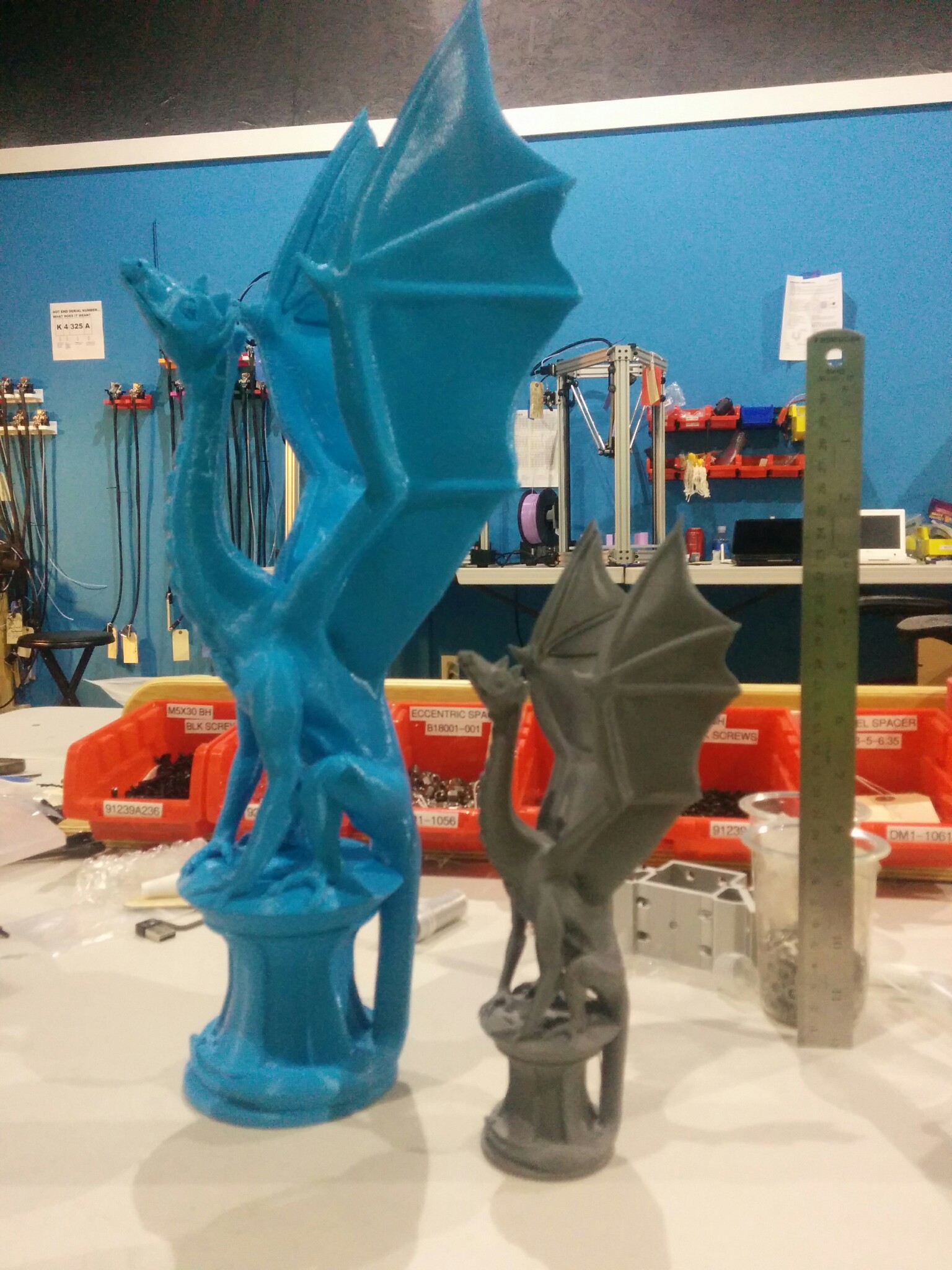 Just got into work, the new dragons are done! 1ft ruler to the right for scale.