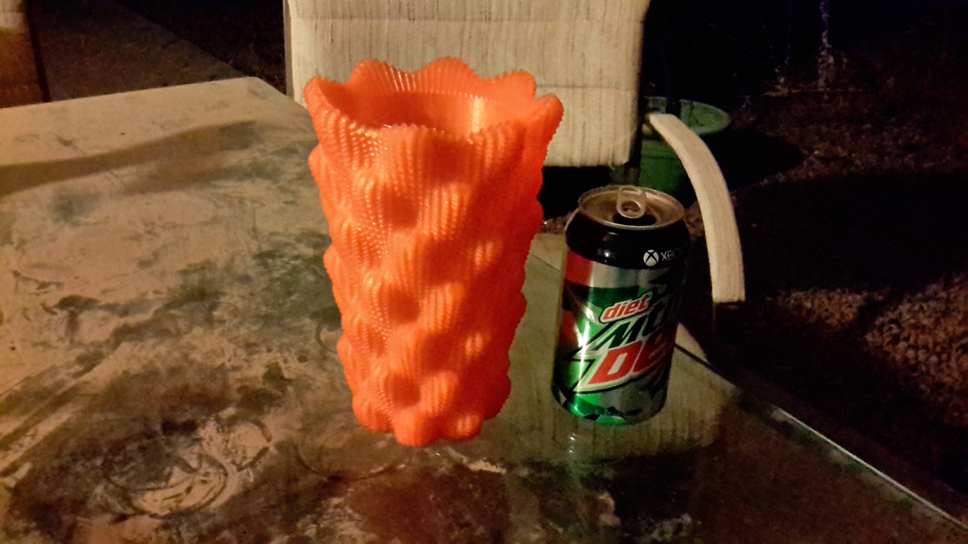 Printed at full size on the Dagoma Neva; sliced on Cura for Dagoma with 0.15 mm layer height, 17% infill. Shown here with a Mountain Dew can for scale. I could probably scale it up a bit and still fit within the Neva’s build volume, and I may actually try that soon. But I’d like to try getting the Neva set up on @OctoPrint first so I can try slicing using the Cura Engine. (I’m close! I’ve been reverse engineering Cura profiles from Dagoma’s XML config files.)